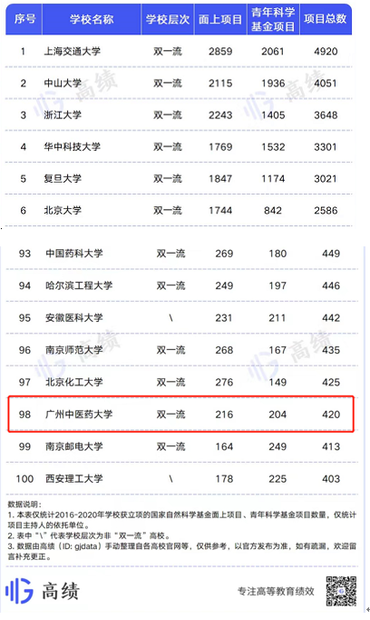 根据国家自然科学基金委员会发布的相关数据,高绩对2016-2020年全国高校获批国家自然科学基金面上和青年项目进行了统计,我校五年来获资助的国自然基金面上和青年项目数跻身全国前100强行列。