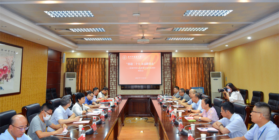为热烈庆祝中国人民解放军建军95周年,7月29日上午,学校党委召开以“喜迎二十大 永远跟党走”为主题的退役军人代表座谈会。学校党委书记张建华出席并讲话,来自校本部以及附属医院的退役军人代表参加座谈。