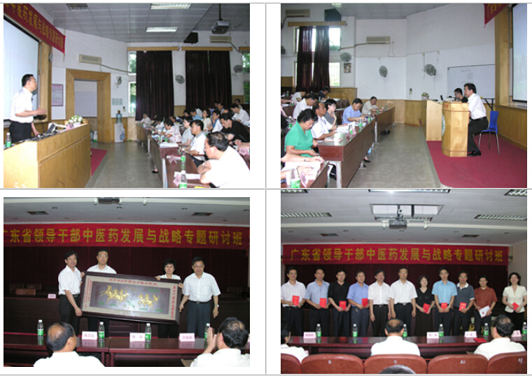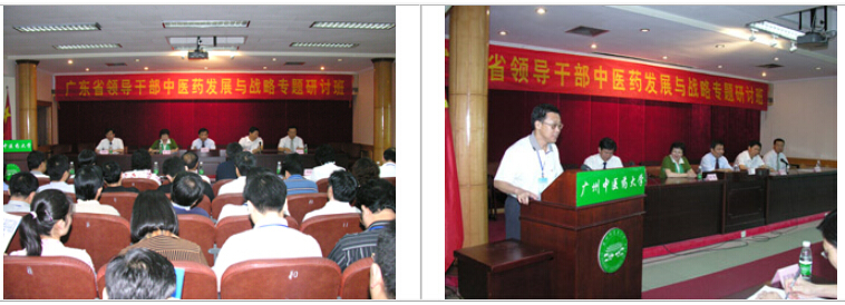 2007年5月21日上午,广东省领导干部"中医药发展与战略专题研讨班"在我校举行。此次研讨班是以贯彻落实中央关于《干部教育培训工作条例(试行)》的要求和省委省政府建设广东中医药强省的战略布署为目标;以学习研讨我省及各地区中医药发展方略为主要内容;目的在于推动中医药与我省社会经济协调发展,进一步发挥中医药在提高人民健康水平中的重要作用,为促进地方经济建设、发展和构建谐社会作出新贡献。