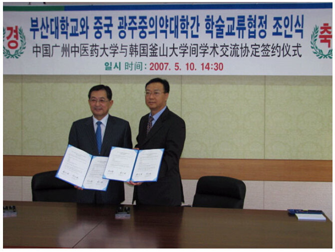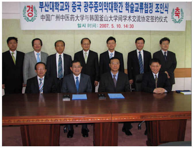 代表团访问了位于韩国庆尚南道釜山市的国立釜山大学。国立釜山大学是成立于1945年的综合性大学,现拥有15个专科学院、9个研究生院和1个体育学部,在校生人数是22,560名,分别就读于4个校区。该校总长金仁世教授非常热心韩医药事业,该校在韩国首次作为国立大学获得了创办韩医药研究生院以及韩医医院的许可书,并已动工建设了相关的基础设施,准备于08年3月份开始招收第一批韩医药研究生。徐校长与该校金仁世校长亲切交流了两校的办学经验,并且在两校间可能合作的领域如合作办学、交流学生及教授、共同关心项目的研究以及为釜山大学校培养韩医药教育人才等方面交换了意见。其后举行了"釜山大学校与beat365官方网站的学术合作协议书"的签约仪式。代表团还参观了该校的釜山校区和梁山校区。两校合作具有较大的潜力和空间。