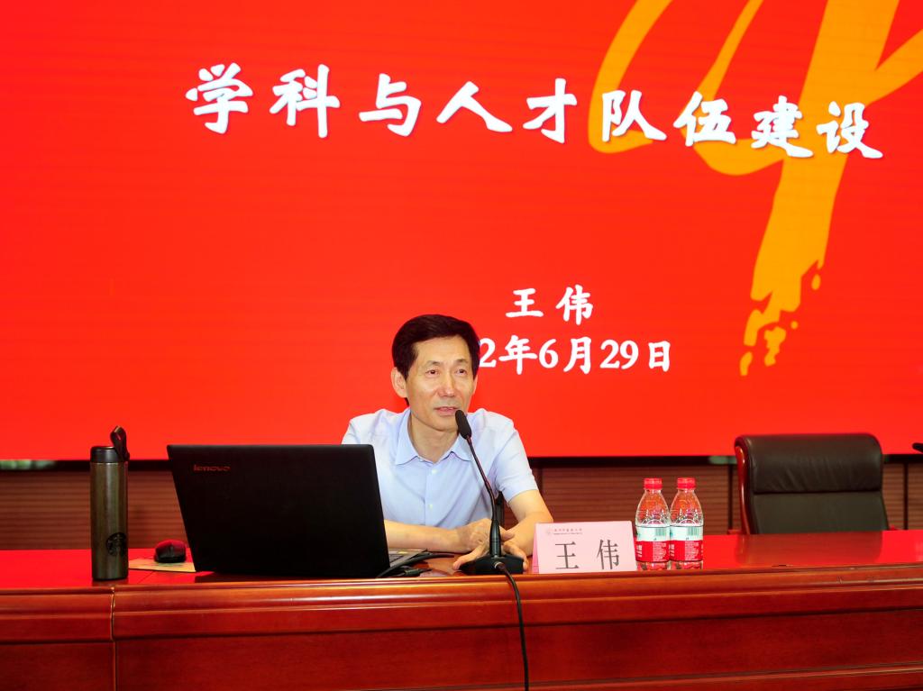 王伟与中青年干部重温并梳理了学科建设领域有关概念;结合我校实际,对新时代“双一流”建设的重点任务进行了解读,指出学科建设要坚定把牢办学正确政治方向,要重点培养急需高层次人才,要下大力气全方位打造一流师资,要强力支撑高水平科技自立自强,要用高质量学科建设回应经济社会高质量发展新需求。