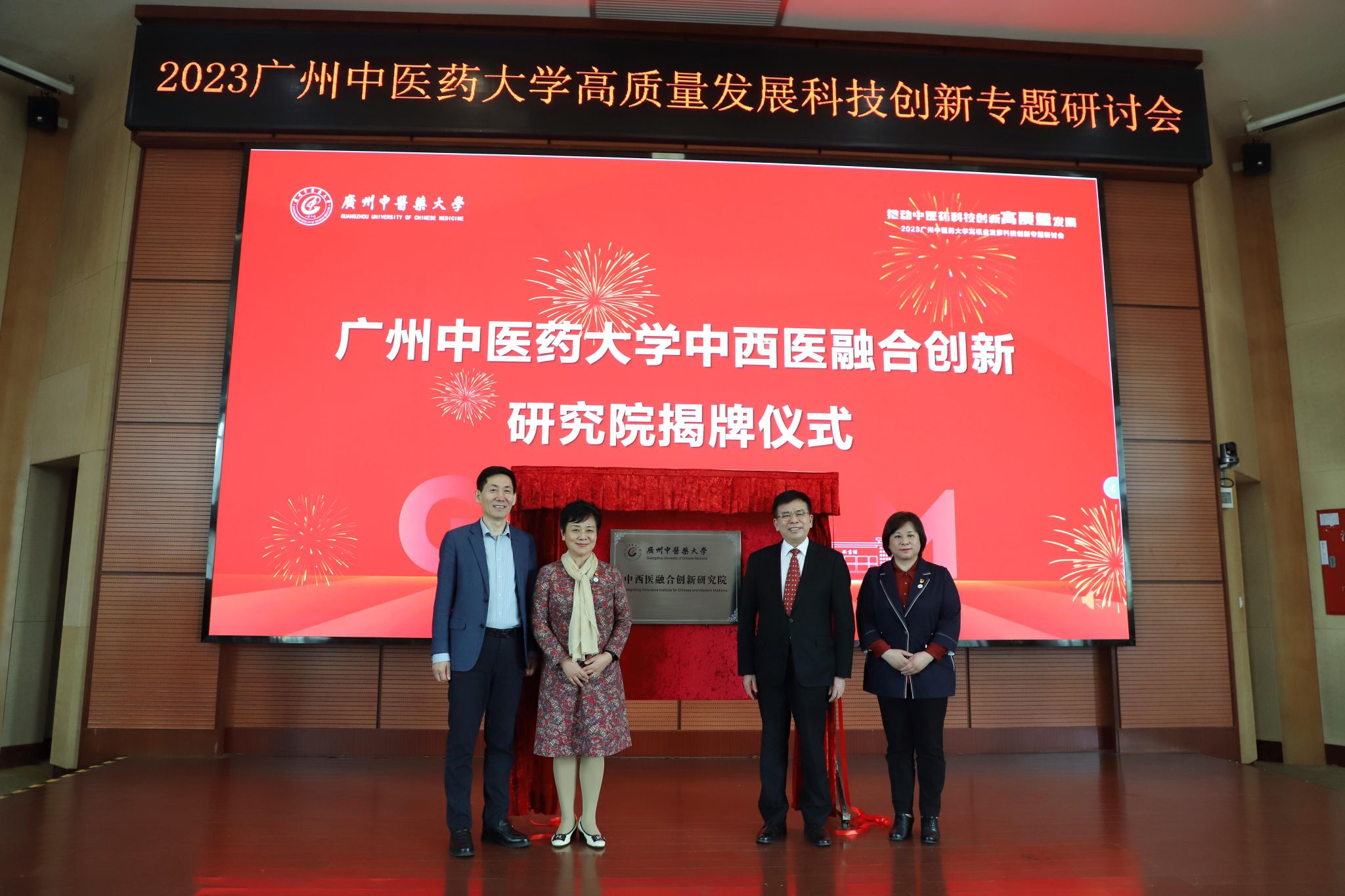 会上,学校党委书记张建华、校长王伟、中国工程院院士刘良和第二附属医院(广东省中医院)党委书记史俏蓉为“beat365官方网站中西医融合创新研究院”揭牌。