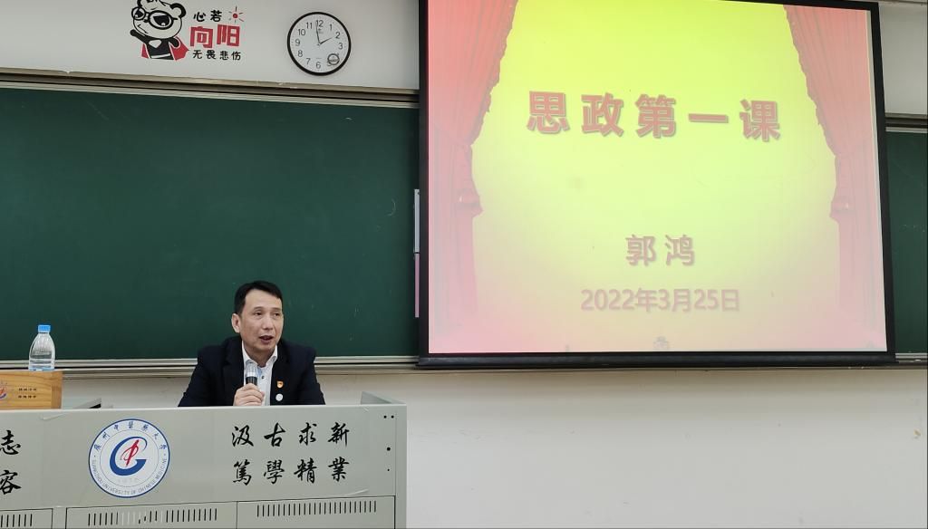 3月25日下午,学校副校长郭鸿在大学城校区教学楼B204为医学信息工程学院2020级医学信息工程专业讲授“思政第一课”。