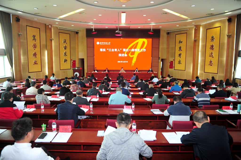 张建华强调,“三全育人”工作是贯彻落实习近平总书记关于教育的重要论述和党的教育方针的重要行动,是做到“两个维护”具体表现。全校上下要充分认识新时代推进“三全育人”综合改革的重大意义,切实增强做好新时代“三全育人”工作的责任感和使命感。要真抓实干,勇于挑最重的担子出思想,敢于啃最硬的骨头破难题,坚决把“三全育人”责任扛在肩上,把工作抓在手上,把任务落在实处,落实学校“三全育人”综合改革工作实施方案,扎实推进学校“全省高校“三全育人”体制机制建设试点单位”内涵建设。要加强一线学生工作,树牢以学生为本、争创一流的理念,关爱学生、服务学生,凝聚全员全程全方位育人思想共识。要认真落实《beat365官方网站青年教师专职辅导员、班主任管理办法(试行)》,齐心协力深化青年教师专职辅导员、班主任选聘工作,打造高素质的思想政治工作队伍。