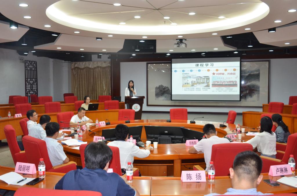 省委教育工委党史学习教育第三巡回指导组成员,学校党委办公室、组织部、宣传部、人事处负责同志,以及本次研修班全体参训学员约50人参加会议。