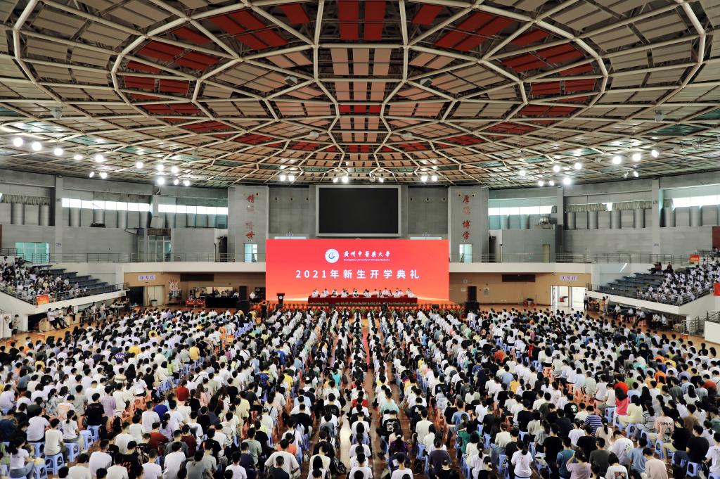 9月7日上午,beat365官方网站在大学城校区举行2021级新生开学典礼。来自全国各地的本科生、研究生以及港澳台学生和来自19个国家和地区的留学生5000余人通过线上、线下方式齐聚一堂,共同以“广中医人”的新身份开启人生新征程。