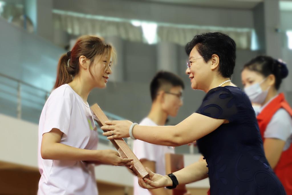 学校党委书记张建华为2021级优秀新生代表颁发获奖证书