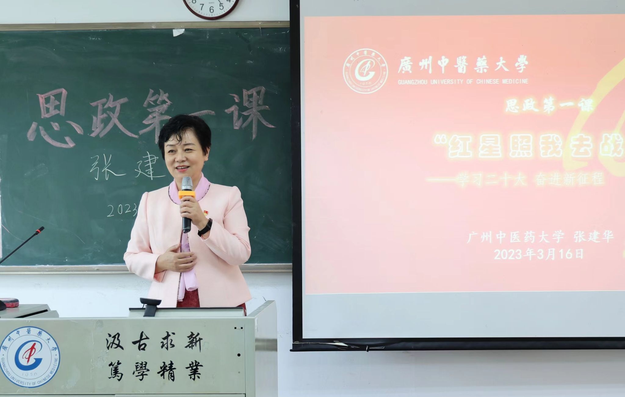 3月16日下午,学校党委书记张建华以“‘红星照我去战斗’——学习二十大,奋进新征程”为主题,为第一临床医学院2022级中医学铁涛班同学讲授思政课,教导青年学生要铭记党的光辉历史,坚定理想信念,争做新时代的好青年。