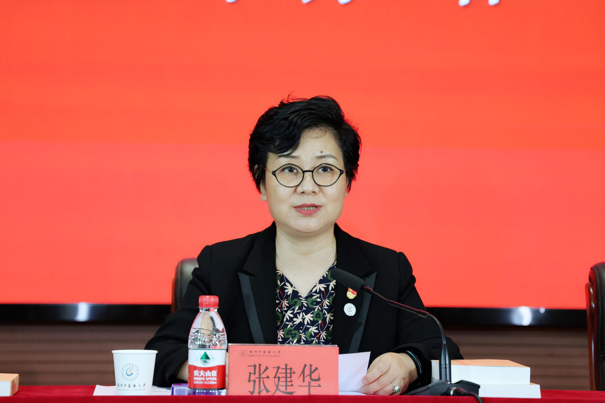 张建华就如何开展好主题教育,向全校党员干部提出五点要求:一是要深刻认识主题教育的重大意义,把思想和行动统一到党中央的决策部署上来,切实增强抓好主题教育的政治自觉思想自觉行动自觉。开展这次主题教育是推动全党统一思想、统一意志、统一行动的重大举措,是始终保持党的强大凝聚力、战斗力的必然要求,是一项重大政治任务。要坚持不懈用习近平新时代中国特色社会主义思想凝心铸魂,深刻领悟“两个确立”的决定性意义,增强“四个意识”、坚定“四个自信”、做到“两个维护”。二是要全面准确贯彻落实主题教育的总要求、根本任务和具体目标,在推动学习贯彻习近平新时代中国特色社会主义思想走深走实上下功夫。深刻把握主题教育“学思想、强党性、重实践、建新功”的总要求,努力在以学铸魂、以学增智、以学正风、以学促干方面取得实实在在的成效,达到凝心铸魂筑牢根本、锤炼品格强化忠诚、实干担当促进发展、践行宗旨为民造福、廉洁奉公树立新风的5个目标。三是要坚持主题教育目标导向和问题导向相统一,着力解决理论学习、政治素质、能力本领、担当作为、工作作风、廉洁自律六个方面的突出问题。要用党的创新理论指导实践、解决问题,借助主题教育的东风,查摆不足,彻底整改。四是要高标准推进主题教育各项工作,推动学校高质量内涵式发展。要聚焦教育教学综合改革、科研体制机制改革、人事制度改革、后勤体制改革、继续教育工作改革、公立医院改革等重点难点问题,找准着力点和突破口,研究解决对策。在落实“立德树人”根本任务,构建“大思政”育人格局,培养一流中医药人才,建设高水平中医药科研平台等方面下功夫。五是要加强组织领导压实工作责任,细化我校“周调度、月督查、月通报”的工作机制,确保主题教育取得扎实成效。各级党组织要精心谋划安排,领导干部要先学一步、学深一层,切实抓好各项任务落实,以扎实的学习成效推动学校高质量发展。