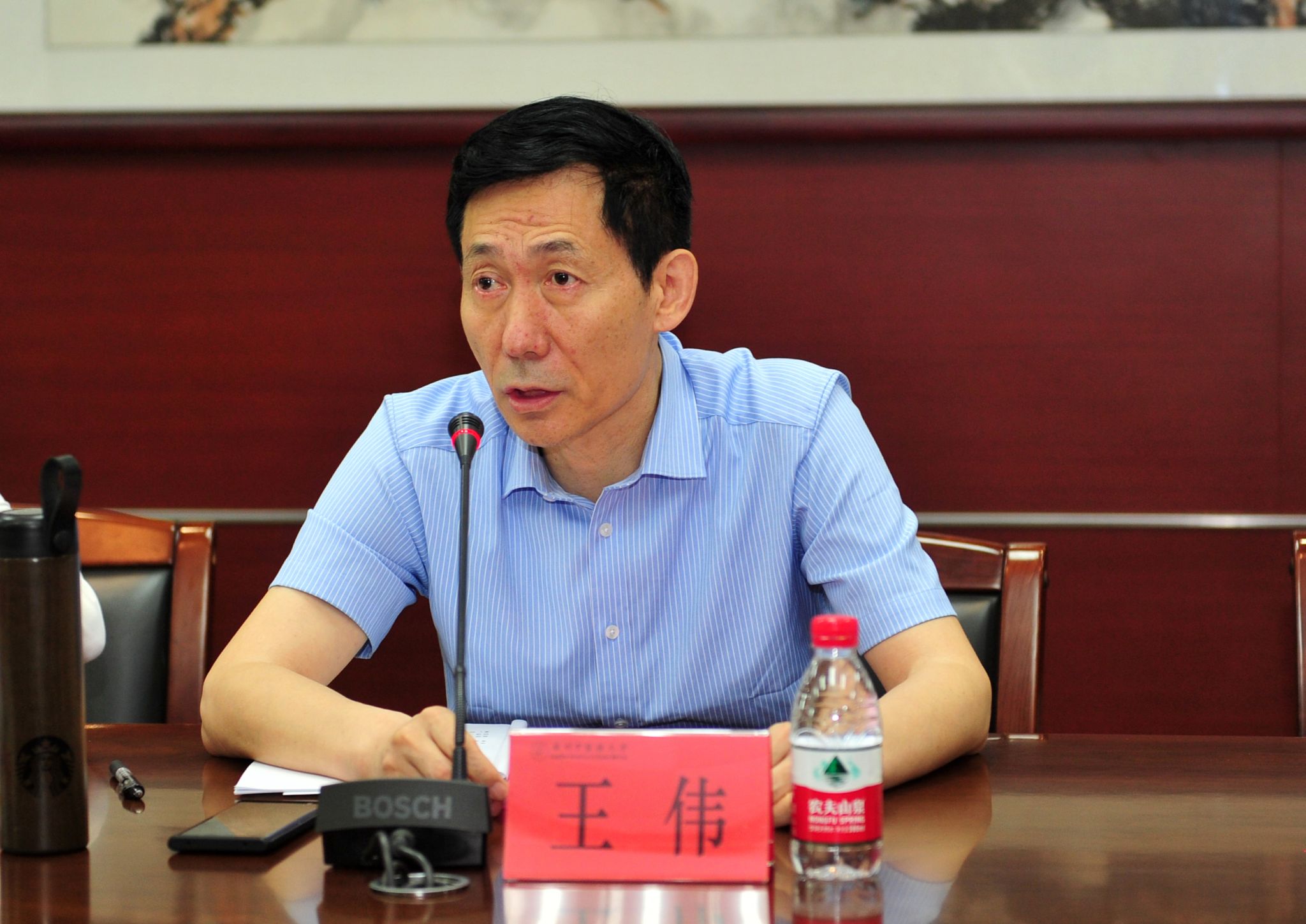 5月19日,学校召开学习贯彻习近平新时代中国特色社会主义思想主题教育读书班(第七期)暨党委理论学习中心组学习会,省委第十八巡回指导组组长杨汉卿、组员樊丽到会指导。会议由学校党委副书记、校长王伟主持。