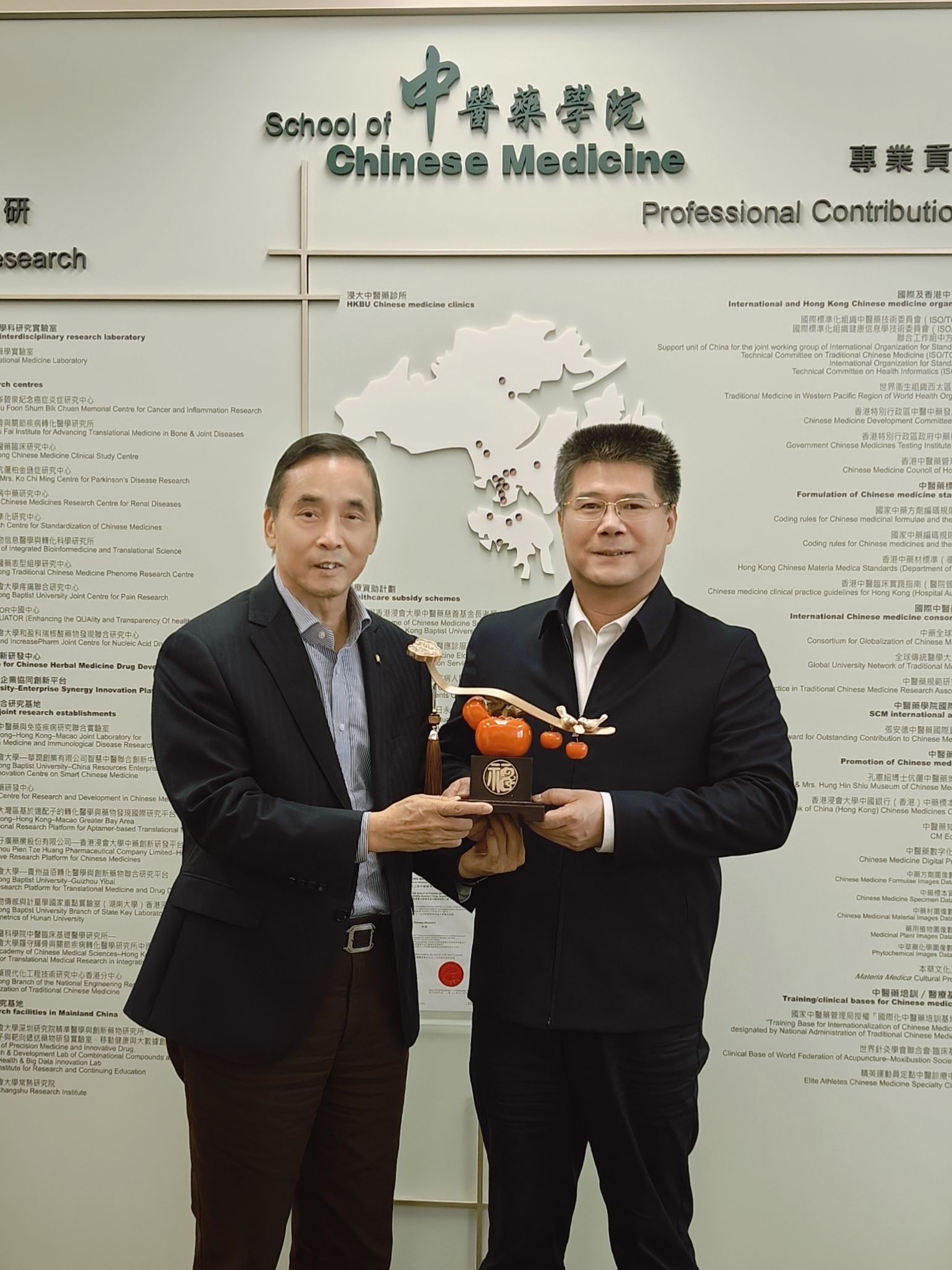 陈文锋与香港浸会大学副校长吕爱平互赠纪念品