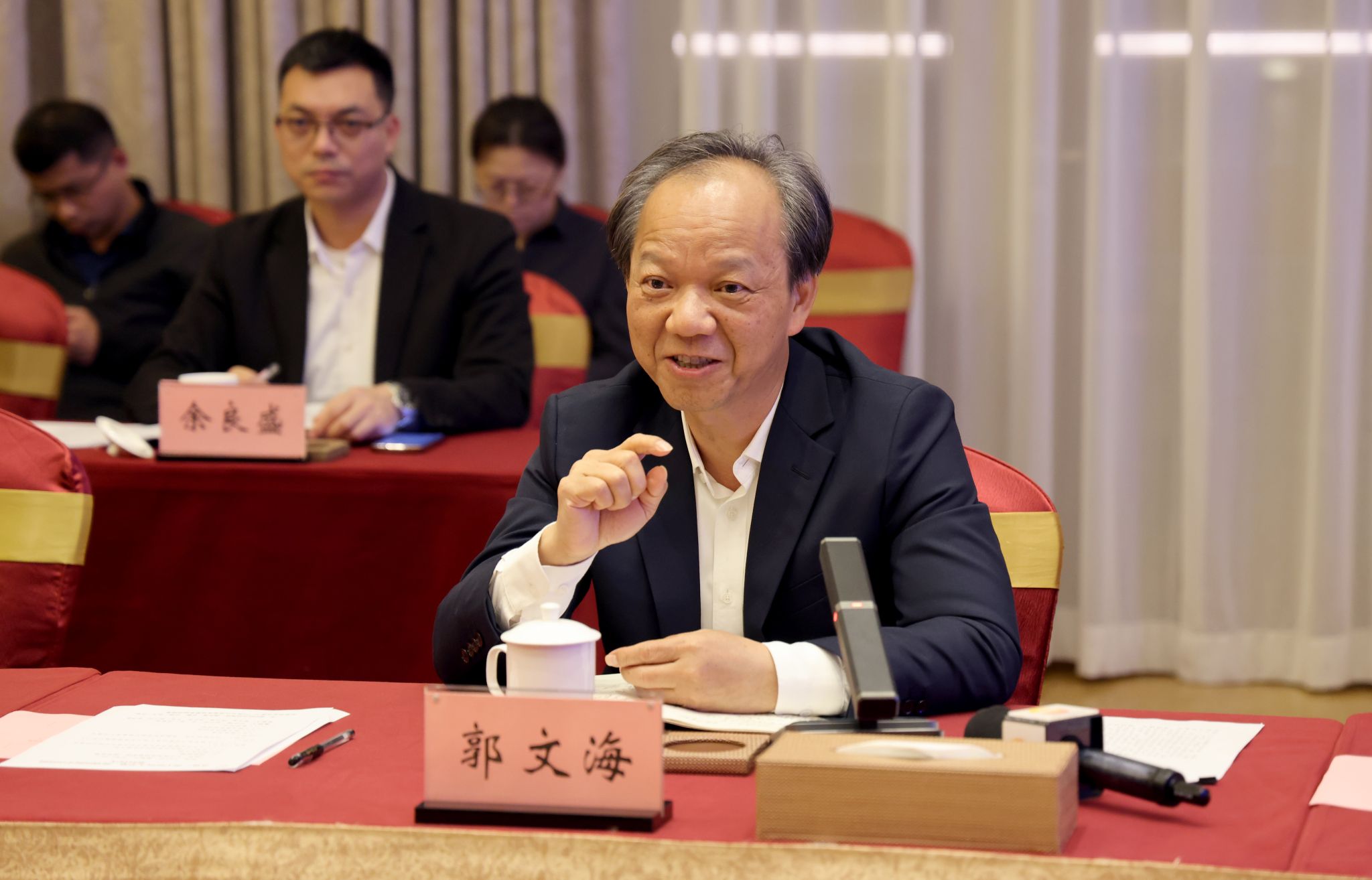 郭文海就加快推进项目建设,全力打造“政、校、医”合作标杆提出三点希望:一是提高政治站位,全力打造国家示范试点标杆。高站位、高标准、高水平落实各项合作事项,全力依托本项目牵引带动区域医疗卫生事业高质量发展,切实为群众提供高品质中医药医疗和健康服务。二是牢牢把握契机,全力推动新院区早日投入使用。加快推进新院区建设,按照2025年初投入使用的目标,高质量推进新院区各项软硬件工程,确保项目早日建成、早日投运。三是同心同向发力,全力支持三乡医院建设发展。通过“政、校、医”三方共同努力,加快将项目医院打造成为区域中医药事业发展的示范,赋能中山中医药产业集群发展,辐射带动中山市乃至珠江口西岸医疗卫生服务能力整体提升。