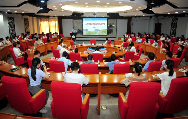此次论坛设立了院士讲座环节,中国工程院院士杨宝峰作了关于“抗肿瘤药物研究与思考”的学术讲座,他主要围绕治疗癌症这一全球性公共卫生挑战,从肿瘤防治的困境、中国抗肿瘤的发展趋势、天然植物在抗癌药物研发中的前景及恶性肿瘤治疗发展趋势等方面与大家分享了抗肿瘤药物的研究现状与自身思考。演讲完毕,会场师生踊跃提问,杨院士一一耐心答疑解惑,大家收获满满。