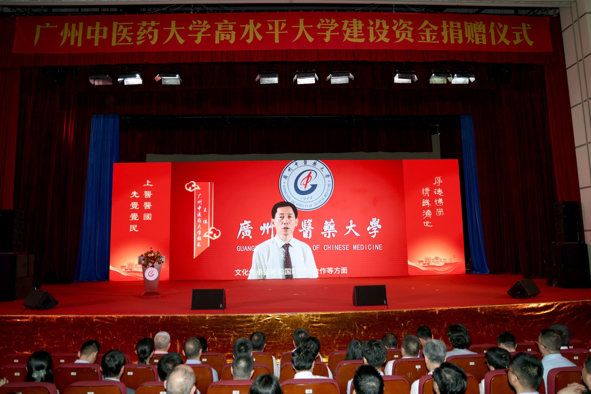 陈文锋在致谢中表示,今年是学校建校100周年,百年校庆各项工作正紧锣密鼓地展开。他用“感恩”“自信”“奋进”三个关键词,和大家共勉:一是感恩。百年来,一代又一代的广中医人始终与国家、民族同呼吸、共命运,用仁心仁术与铮铮铁骨扛起中医药事业发展的大任,书写了可歌可泣的历史篇章。感恩13万余名海内外校友,感恩社会各界贤达和友好人士,感恩全校师生。二是自信。中医药是中华文化的“瑰宝”,我们不仅是守宝人,更是寻宝人、献宝人。beat365官方网站是开创中医药现代教育先河的百年学府,传承发展中医药事业是广中医人一辈子的使命。三是奋进。站在建校百年新的历史起点上,全校师生员工要认真学习百年校史,传承红色基因,弘扬家国情怀,从学校的发展历史中汲取智慧和力量!要学习先辈们以振兴中医为志艰辛创校、艰苦创业的高尚价值追求,传承和弘扬先辈们救死扶伤、为民救国的崇高情怀,传承创新发展中医药事业!