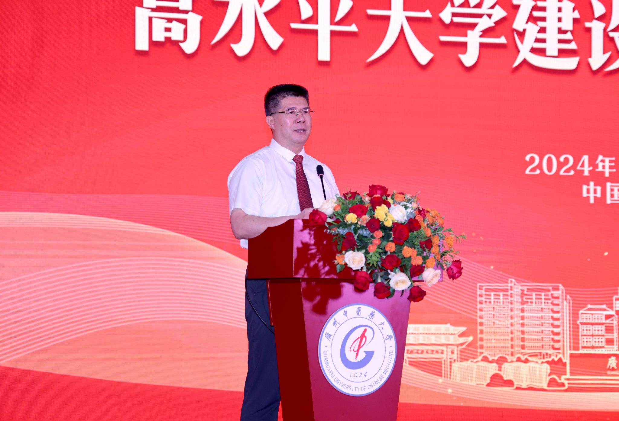 校友代表、固生堂集团联合创始人、首席战略与策略官李明芮,广东健翔医院管理集团院长龙翔宇,天草药业集团董事会主席郑开荣,1977级中药专业杰出校友、广东利玮医药有限公司董事长陈丹,2004级校友栾加芹,以及直属附属医院、校政合作医院、临床医学院、非直属附属医院等代表参加。学校党委书记陈文锋出席并致谢,副校长潘华峰主持仪式。