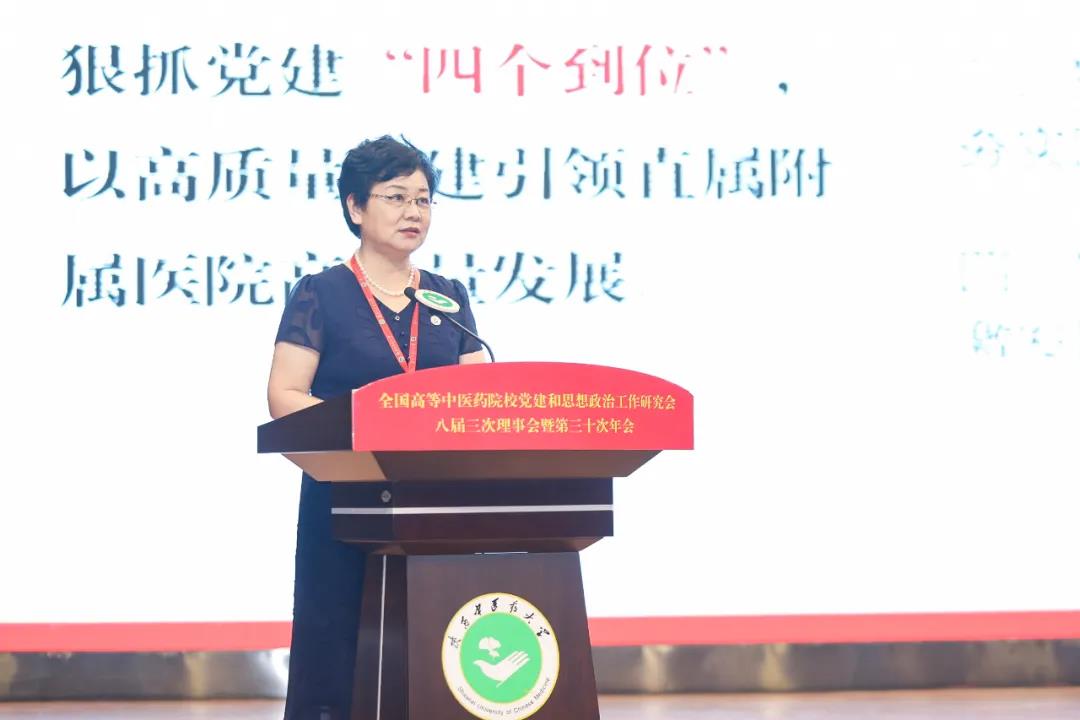 7月16日,全国高等中医药院校党建和思想政治工作研究会八届三次理事会暨第三十次年会在陕西中医药大学召开,国家卫生健康委党组成员、国家中医药管理局党组书记、副局长余艳红出席会议并作《深入学习贯彻习近平总书记“七一”重要讲话精神,谱写新时代高等中医药院校发展新篇章》主旨报告。我校党委书记张建华带队参加会议并作《狠抓党建“四个到位” 高举旗帜引领发展》主题报告,介绍了学校党委以高质量党建引领直属附属医院高质量发展的实践经验。
