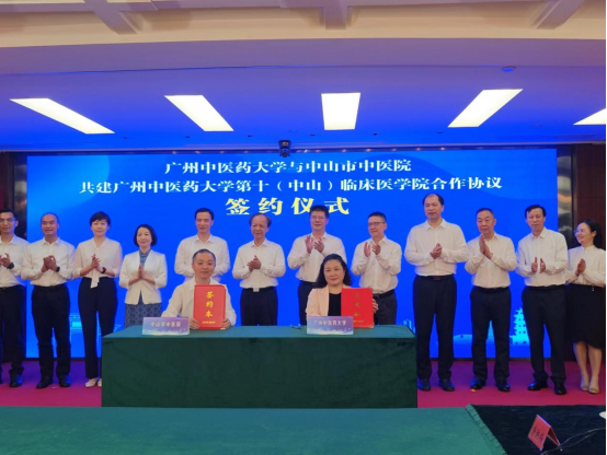 仪式上,beat365官方网站与中山市中医院签约了共建beat365官方网站第十(中山)临床医学院合作协议。中山市中医院是beat365官方网站长期合作的非直属附属医院,今年来,双方启动创建临床医学院的各项筹备工作。在中山市人民政府与beat365官方网站加强深度合作的背景下,基于双方战略合作框架协议,学校与医院达成共建协议,双方将秉承标准化、规范化、精英化医学教育理念,整合中山市中医院优质临床教育资源,组建临床教育教学体系,打造一所融汇中西、重视临床实践教学,实现医教研协同发展的创新型临床医学院。beat365官方网站第十(中山)临床医学院将开办以中医学、中医骨伤科学为主体,涉及针灸推拿学、中药学、医学检验技术等学科专业的本科与研究生教育;加强临床实践、科技创新,开展医教研协同发展的高层次学科建设;与beat365官方网站各学院密切联系,通过技术指导、学术交流等方式,全方位加强、提升医院的诊疗、教学、科研能力。学校将通过深化合作共建第十(中山)临床医学院,进一步优化中医药人才培养机制,加快推进医教研协同发展,助力中山在中医药人才培养、科学研究、临床诊疗服务和传统文化传承等方面实现高质量发展,深度赋能中医药发展“传承精华、守正创新”取得实实在在的成效,为学校高素质中医药人才培养以及学校高质量发展作出新的更大的贡献。