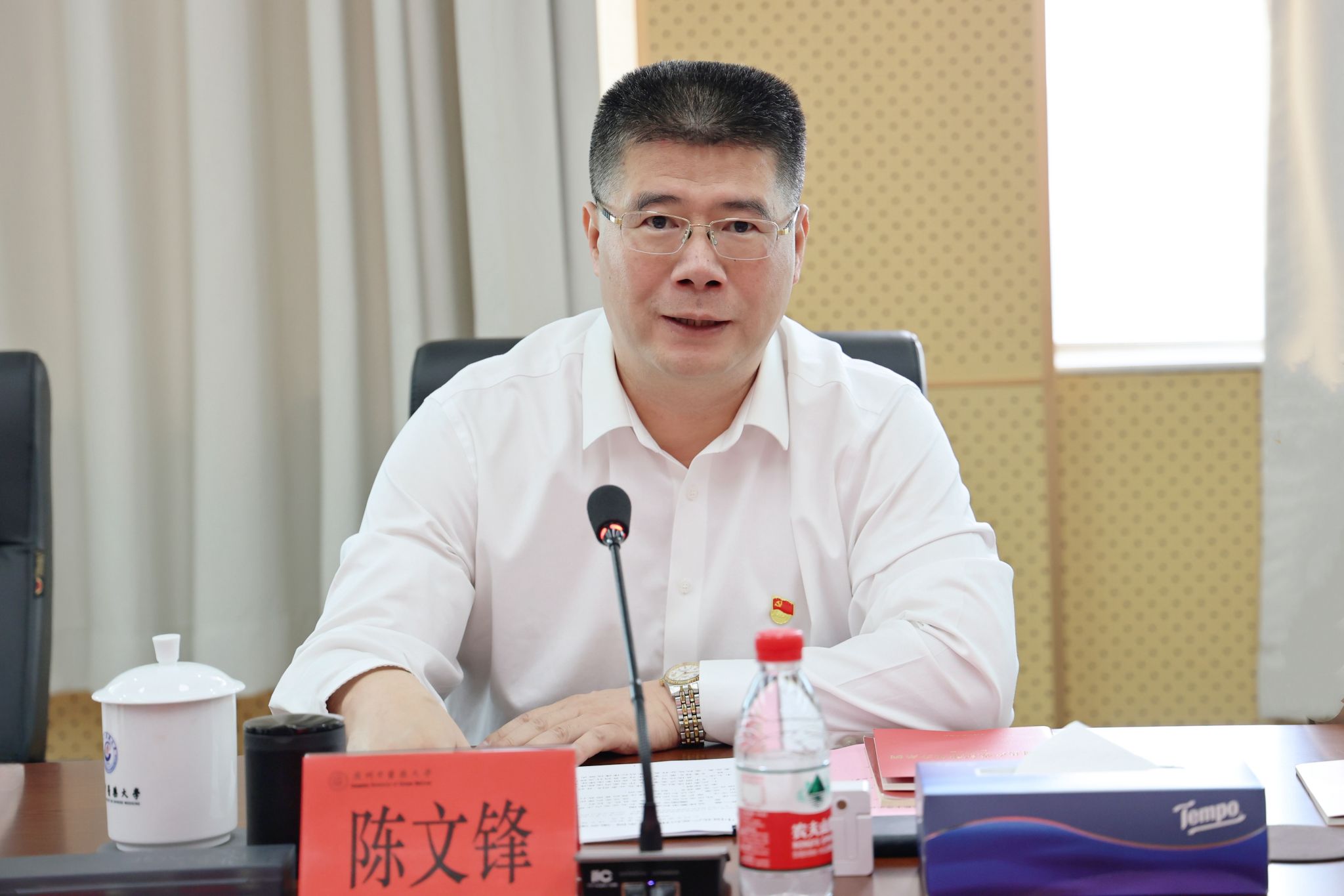 陈文锋指出,自4月以来,学校党委严格按照党中央决策部署,深入学习贯彻习近平总书记关于加强党的纪律建设的重要论述,认真学习贯彻新修订的《中国共产党纪律处分条例》,组织全校师生党员开展了针对性强、形式多样、内容丰富的党纪学习教育,持续推动学习教育走深走实、见行见效。全校党员领导干部要继续带好头,用心钻研把握,时刻对标对表,进一步提高党性修养,增强纪律意识,不断夯实坚定拥护“两个确立”、坚决做到“两个维护”的思想根基,努力做自我革命的表率、遵规守纪的标杆,不断把党纪学习教育成果转化为推动学校高质量发展,助力“双一流”和高水平大学建设的实际成效。