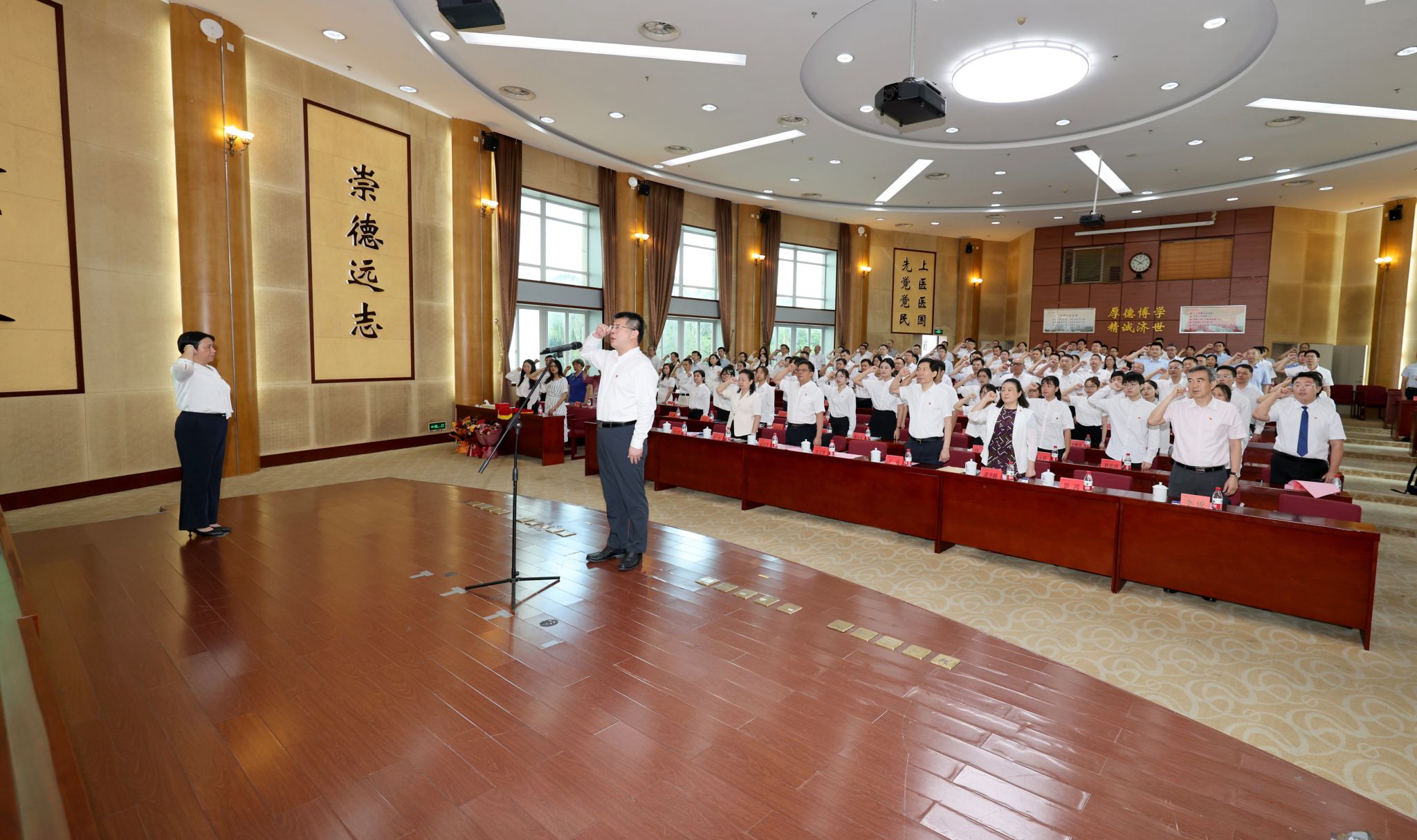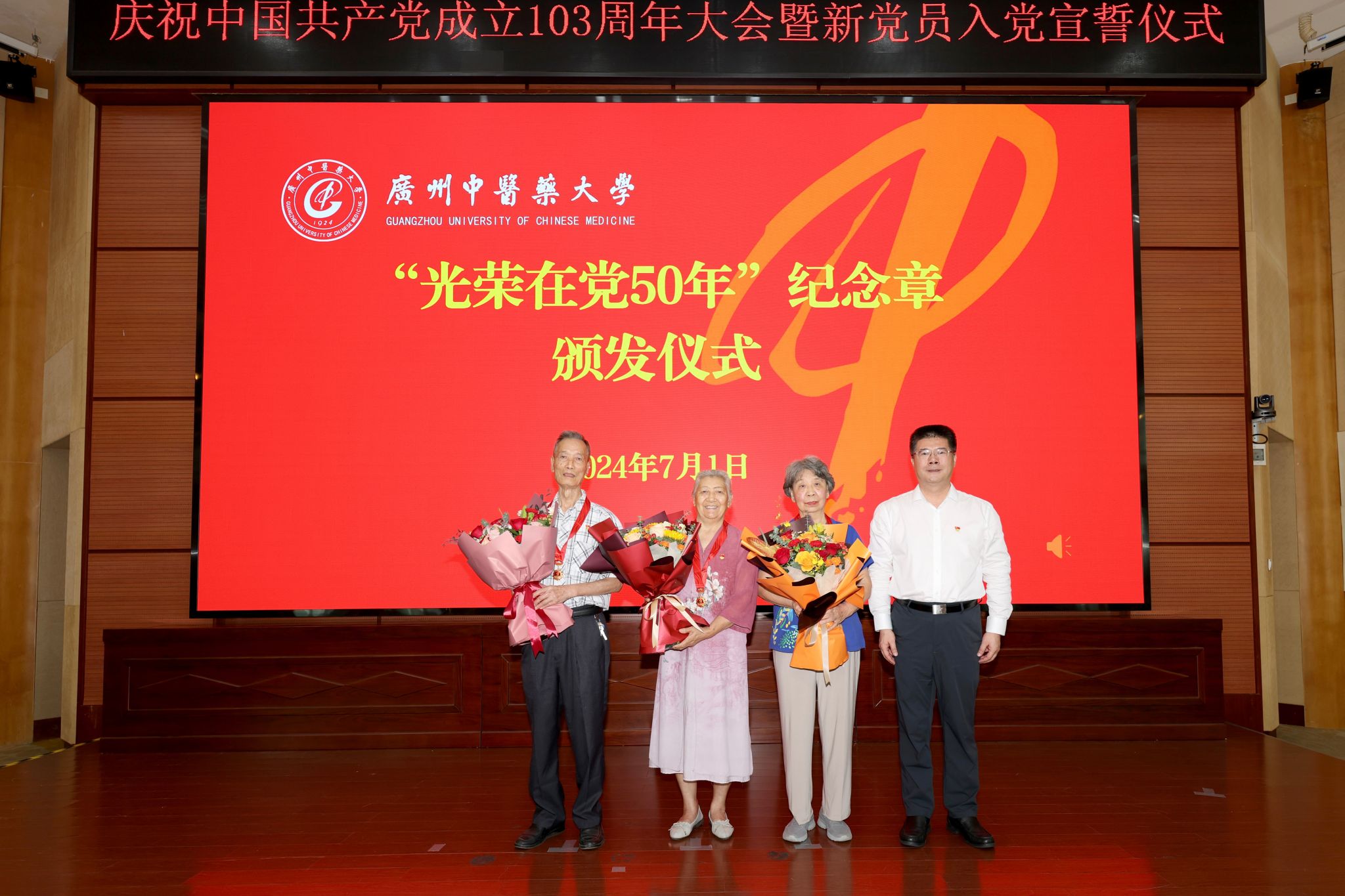 学校党委书记陈文锋代表学校党委,向辛勤工作在教学、科研、临床、管理一线的广大党员、师生员工和各位老同志致以节日的问候!向获得“光荣在党50年”纪念章的老党员致以崇高的敬意,向新入党的党员同志表示热烈的祝贺!