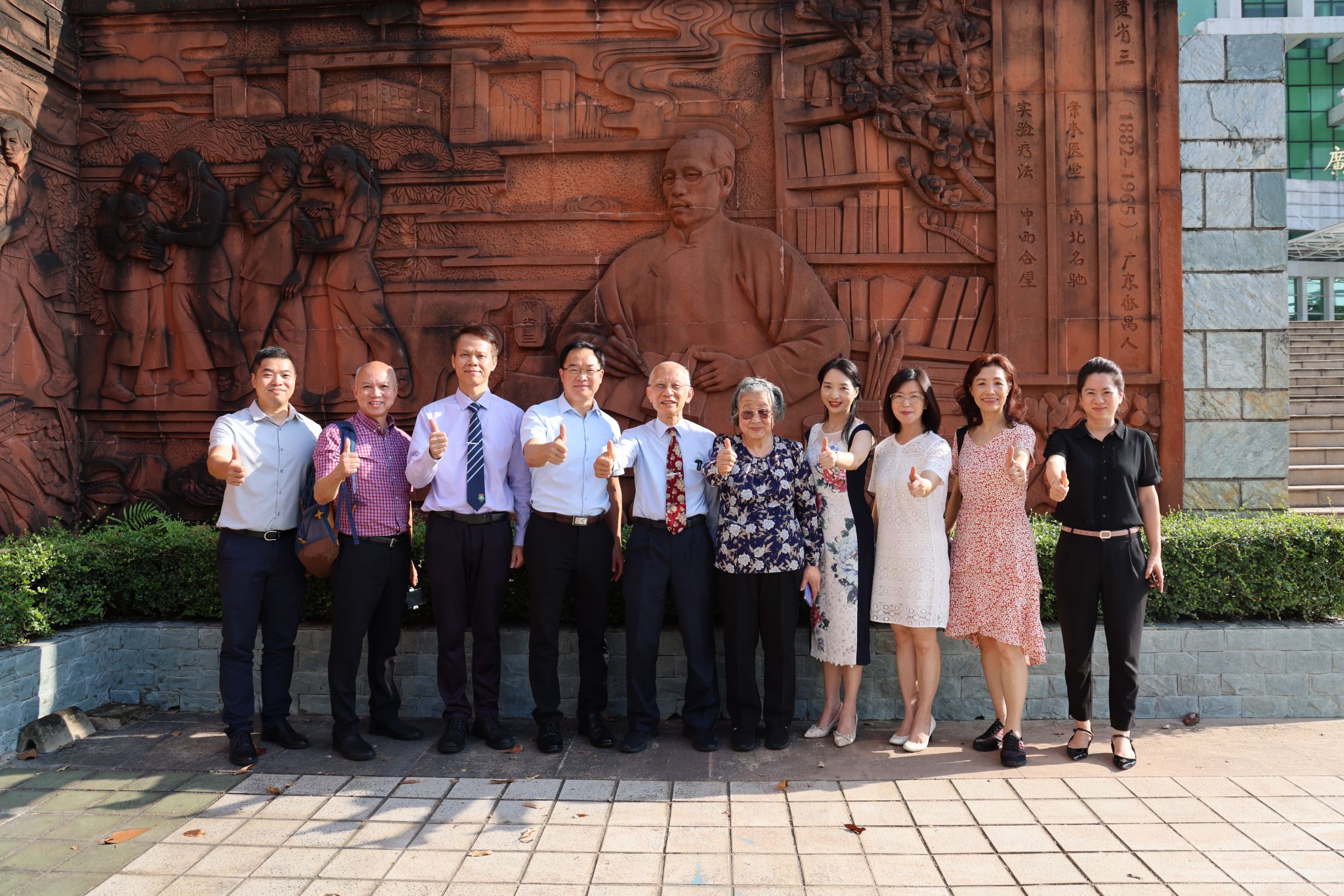 黄卓雄一行在学校岭南名医壁黄省三塑像下合影留念