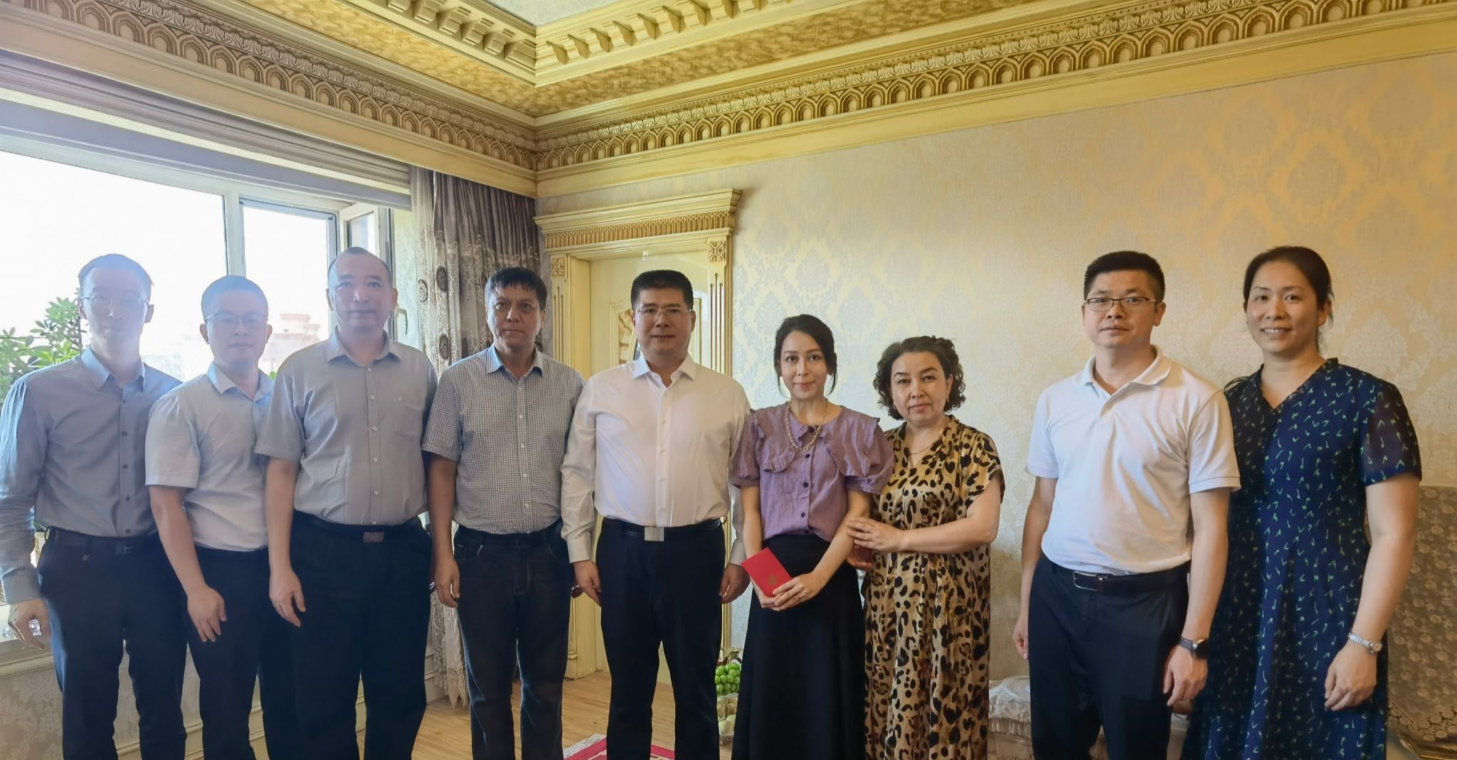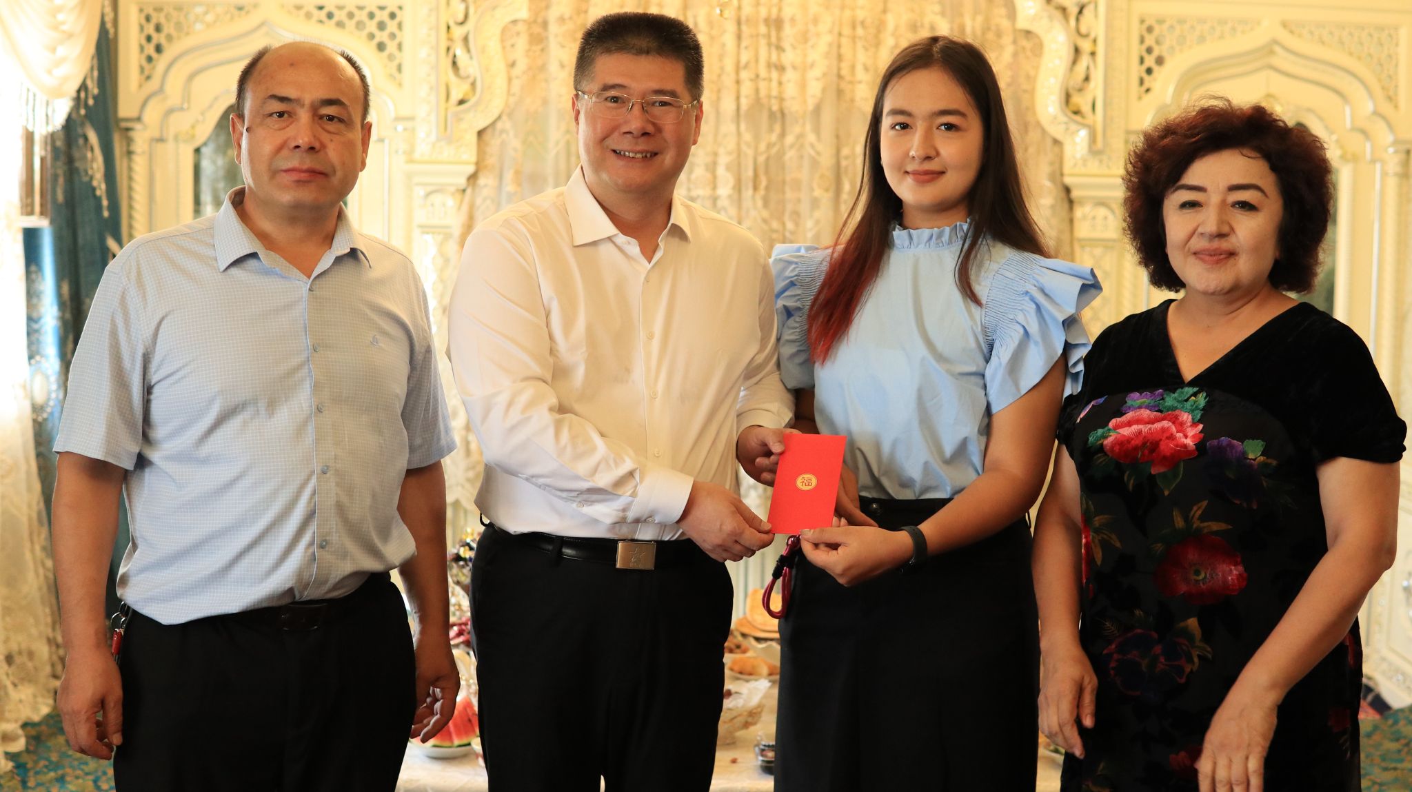 在喀什期间,陈文锋一行对学校第二临床医学院(广东省中医院)2023级医学检验技术专业学生艾迪娜·穆扎帕尔、针灸康复临床医学院2024届康复治疗学专业应届毕业生迪拉热·艾尼瓦尔开展暑期家访。家长们见到远赴千里来看望自己孩子的老师们激动不已,深深感受到党和国家以及学校对学生的关心和关爱。学生所在学院负责同志向学生家长介绍了学生在校学习生活情况,悉心解答家长关心关注的问题,并征求家长对学校教育教学工作的意见建议,增进家校沟通,为学生全面发展提供更加精准的支持。陈文锋还为两位学生送上慰问金,鼓励艾迪娜·穆扎帕尔坚定理想信念,积极向党组织靠拢,努力学习专业技术,毕业后投身家乡建设;祝贺迪拉热·艾尼瓦尔通过国家公务员考试,鼓励她在工作岗位上迸发“巾帼力量”,展现广中医人良好的精神风貌,不负学校培养和家长期望,努力成长为对党和人民忠诚可靠、堪当时代重任的栋梁之才,同时感恩学生家长对学生在学习成长路上的大爱大舍,并强调充分挖掘在校学生、校友的先进事迹,讲好广中医人的奋斗故事。