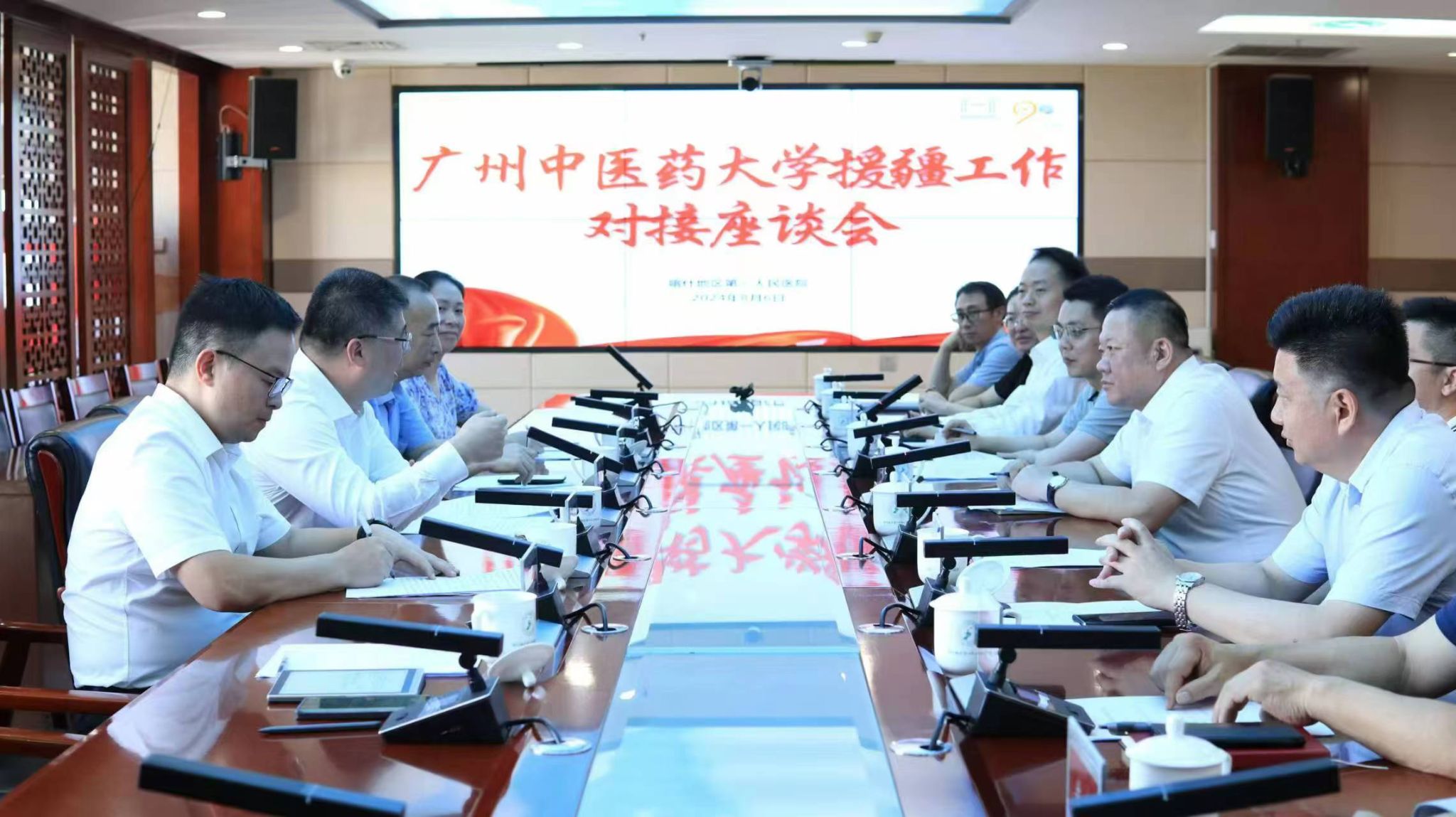 林芝市卫生健康委党组书记格桑边巴、林芝市卫生健康委党组副书记、副主任黄昊健,林芝市教育局党组副书记、副局长张正安;喀什地区卫健委党组书记、副主任戴永刚,广东援疆前方指挥部副总指挥、喀什地区教育工委副书记林锡江,广东援疆前方指挥部文教卫生社会保障处处长郑凯军等参加。
