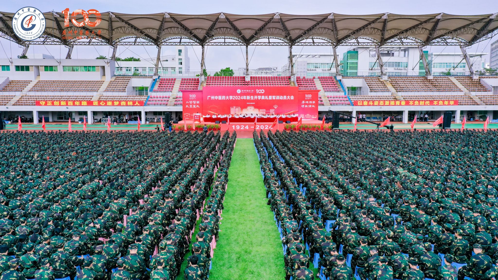 9月10日上午,beat365官方网站2024年新生开学典礼暨军训动员大会在大学城校区体育场举行。在beat365官方网站建校100周年之际,近6000名2024级新生,正式成为“广中医人”。他们满怀喜悦与期待,即将在这里开启人生的新篇章。
