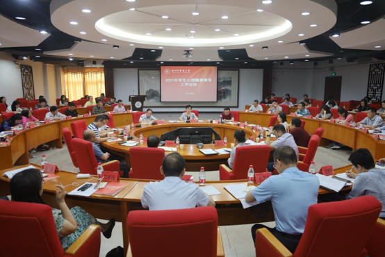 4月22日, 我校2021年学生心理健康教育工作会议在大学城校区召开,学校党委书记张建华出席会议并讲话,学校党委副书记邓国安主持会议。
