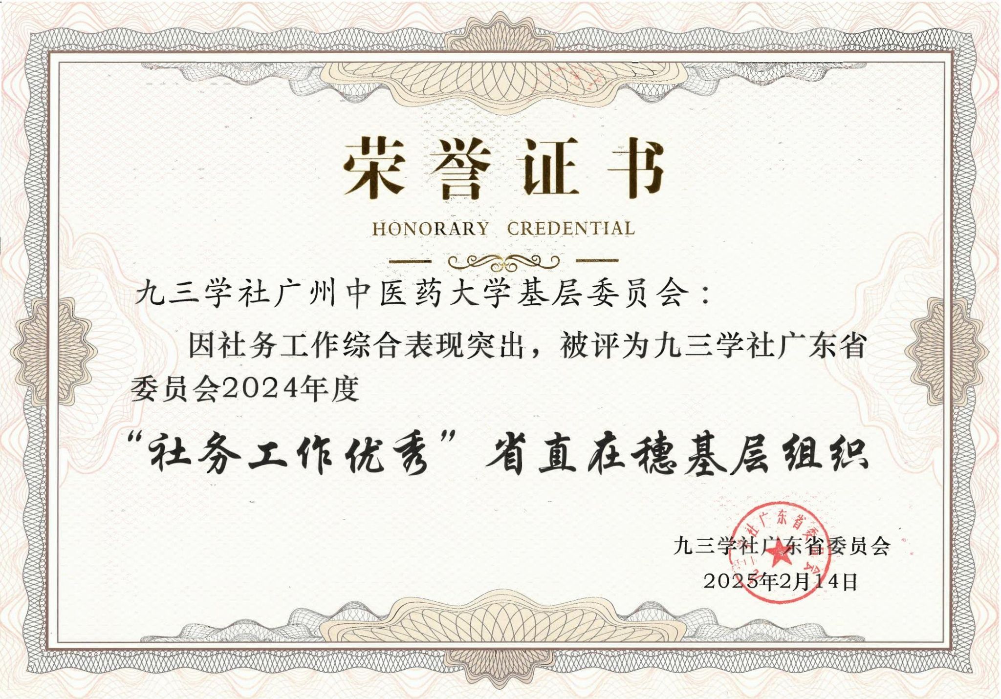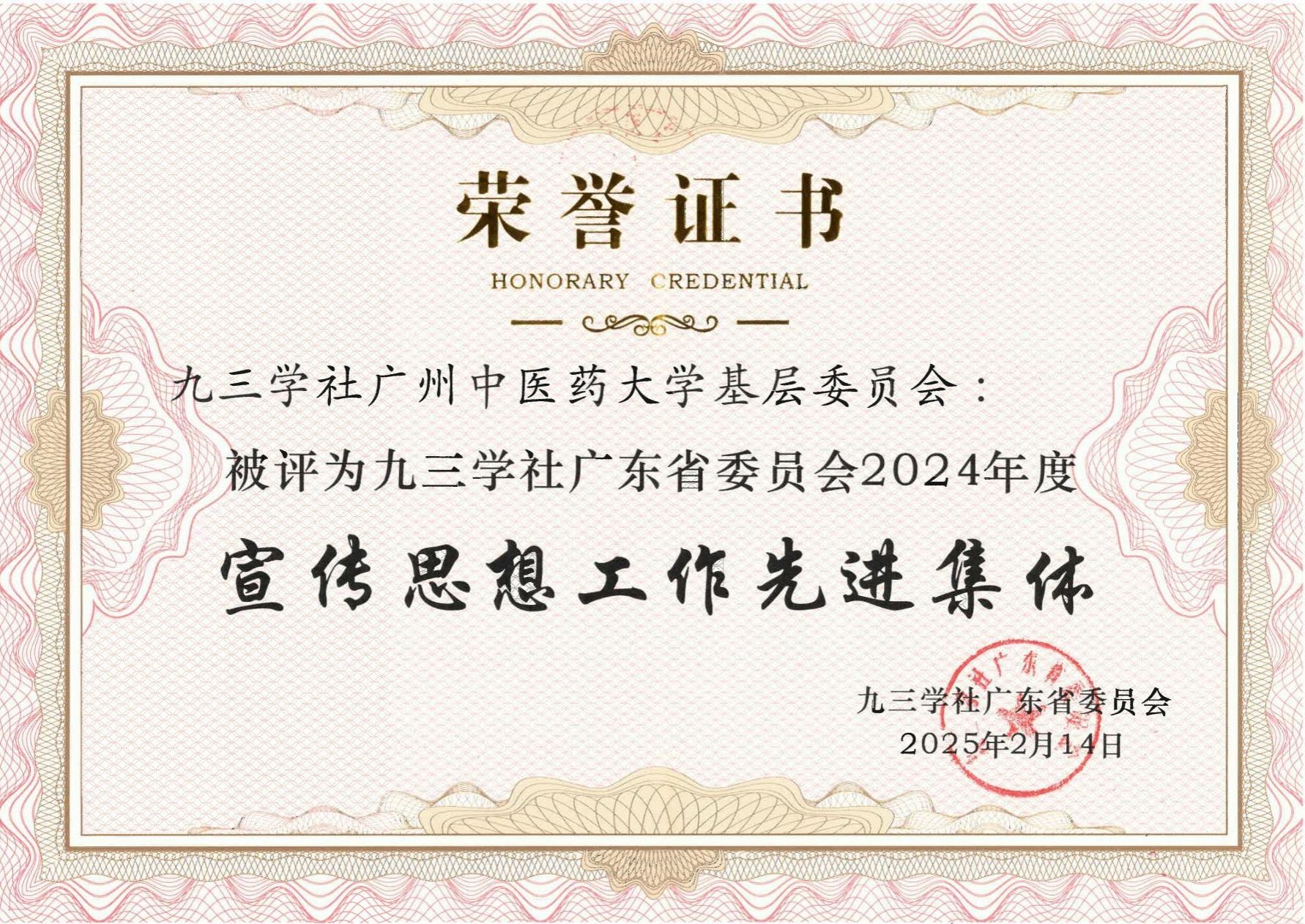 此次获奖是对我校九三学社基层委员会工作的高度认可,也彰显了学校在民主党派建设和统战工作方面取得的显著成效。未来,学校将继续支持基层委各项工作,共同推动学校事业高质量发展,为广东省中医药事业和社会经济发展作出更大贡献。