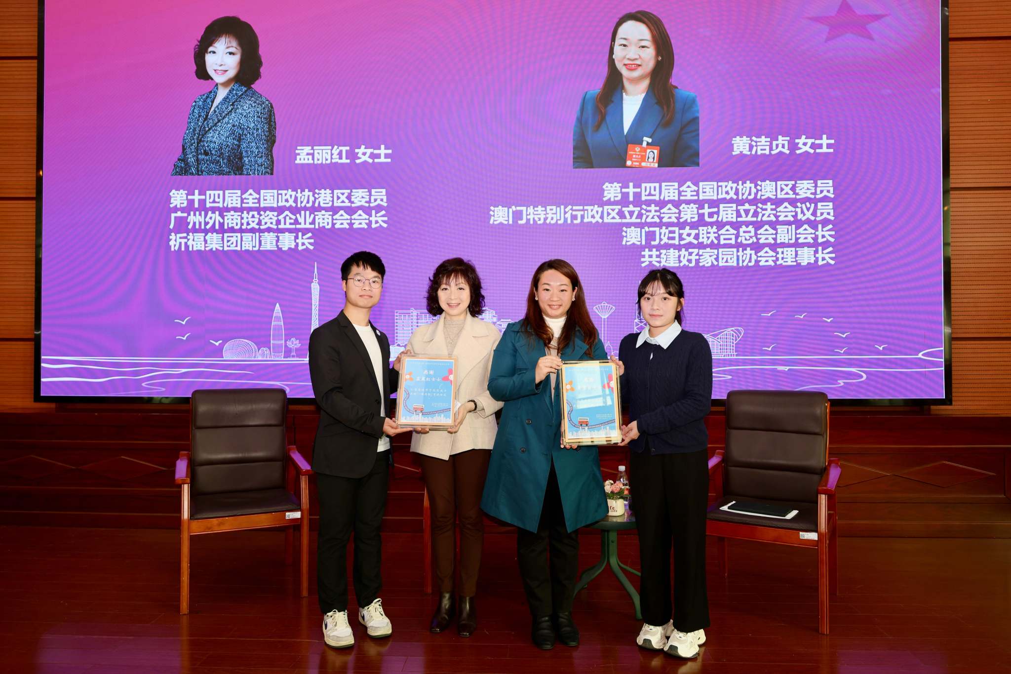 分享会尾声,学生代表上台向孟丽红委员、黄洁贞委员敬送感谢状,对两位委员百忙之中为beat365官方网站港澳学生开展全国两会精神分享会致以诚挚谢意。