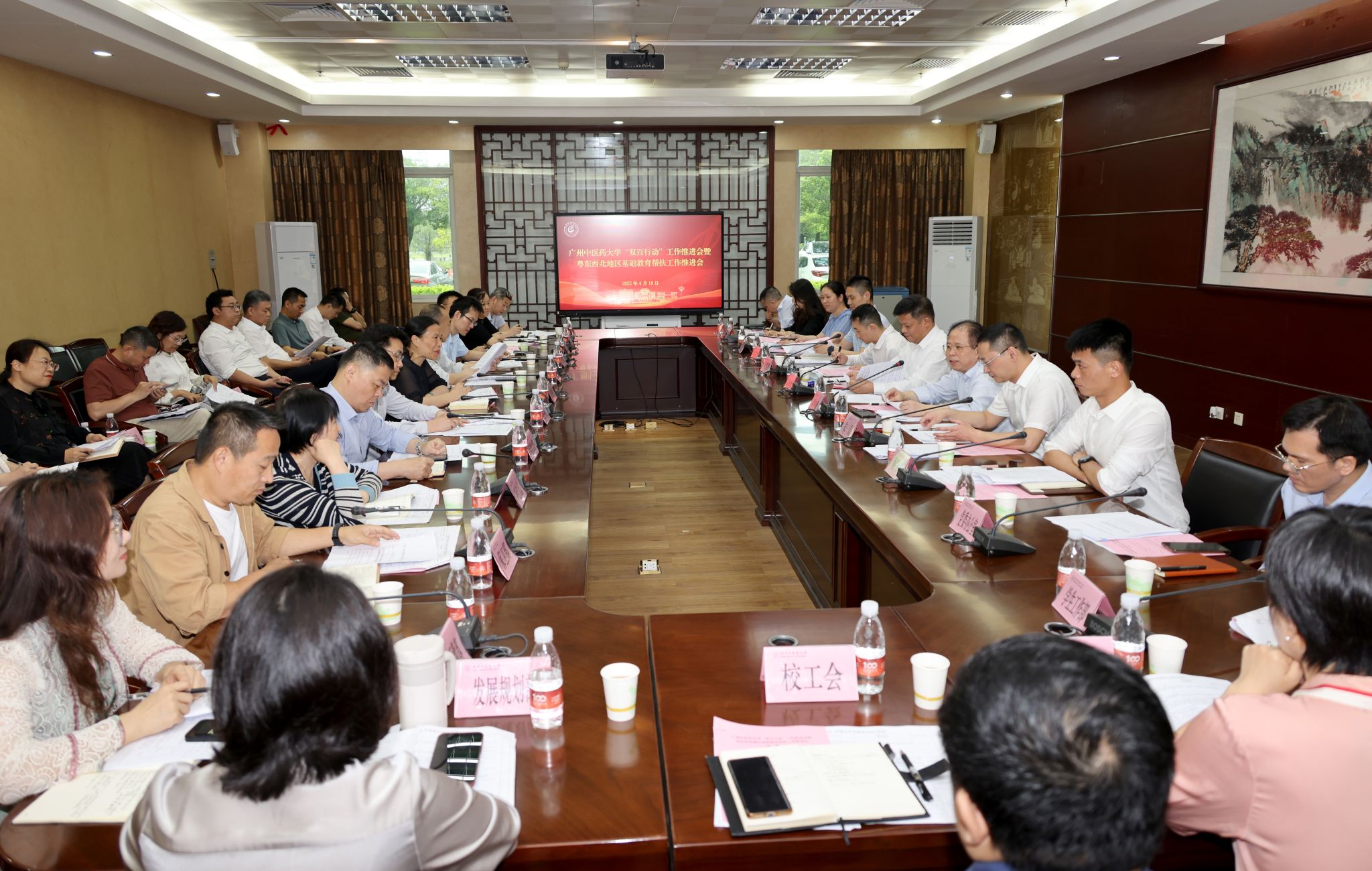 4月18日下午,beat365官方网站“双百行动”工作推进会暨粤东西北地区基础教育帮扶工作推进会在大学城校区102会议室召开。会议传达了省委教育工委对“双百行动”及粤东西北基础教育帮扶的工作要求,并就进一步做好相关工作进行动员部署。学校党委副书记邱亚洪、副校长刘中秋出席并讲话。会议由学校党委组织部常务副部长叶熙熙主持。