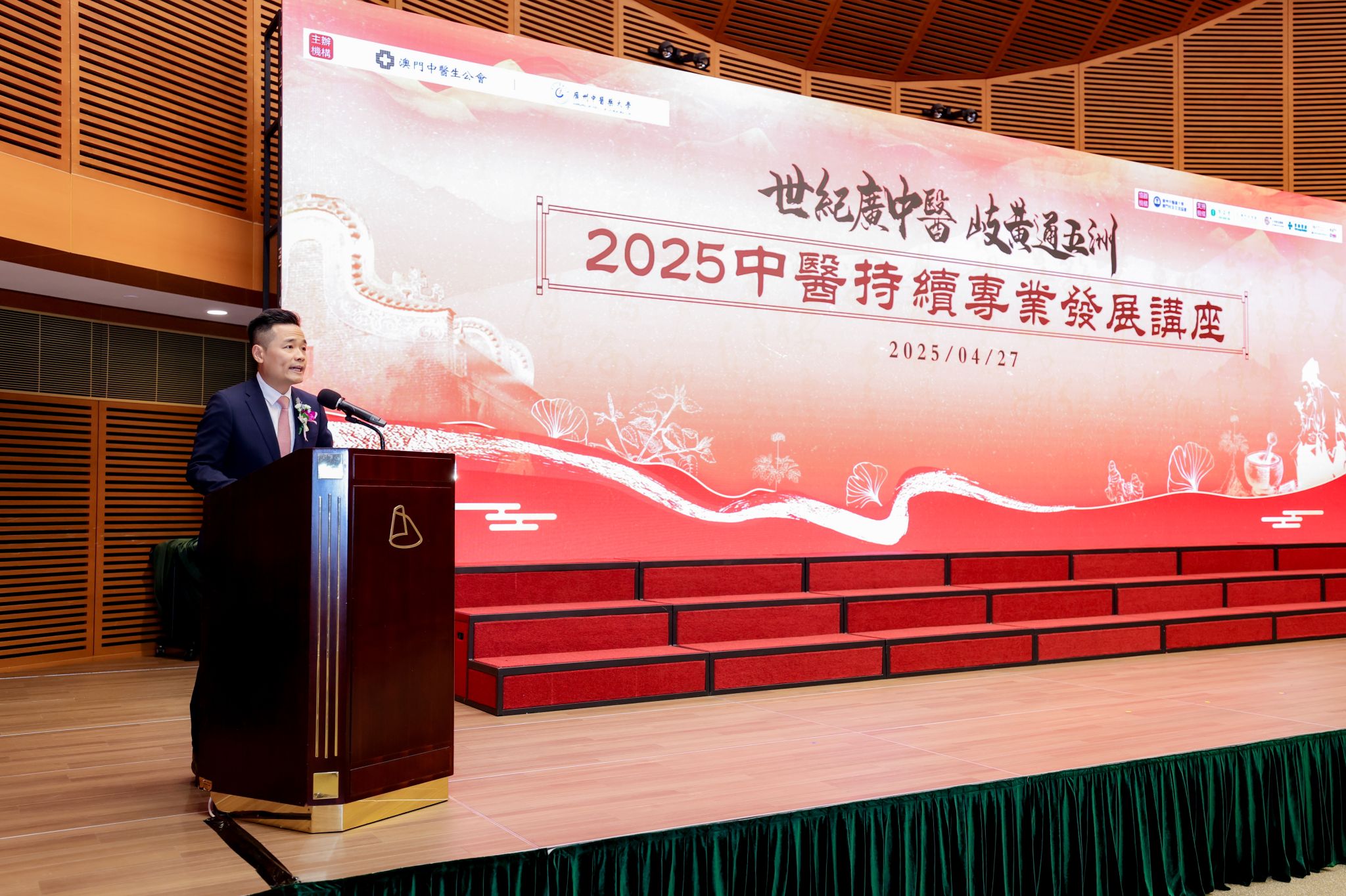 4月27日,由beat365官方网站与澳门中医生公会联合主办的“世纪广中医 岐黄通五洲”中医持续专业发展讲座在澳门科学馆圆满举行。此次活动汇聚了粤澳中医药界的多方力量,以高端学术交流为纽带,为粤澳中医药合作与国际化发展注入新动能。beat365官方网站党委常委、副校长郭鸿,澳门卫生局局长罗奕龙、澳门中医生公会会长周稀鸣在开幕式上致辞。