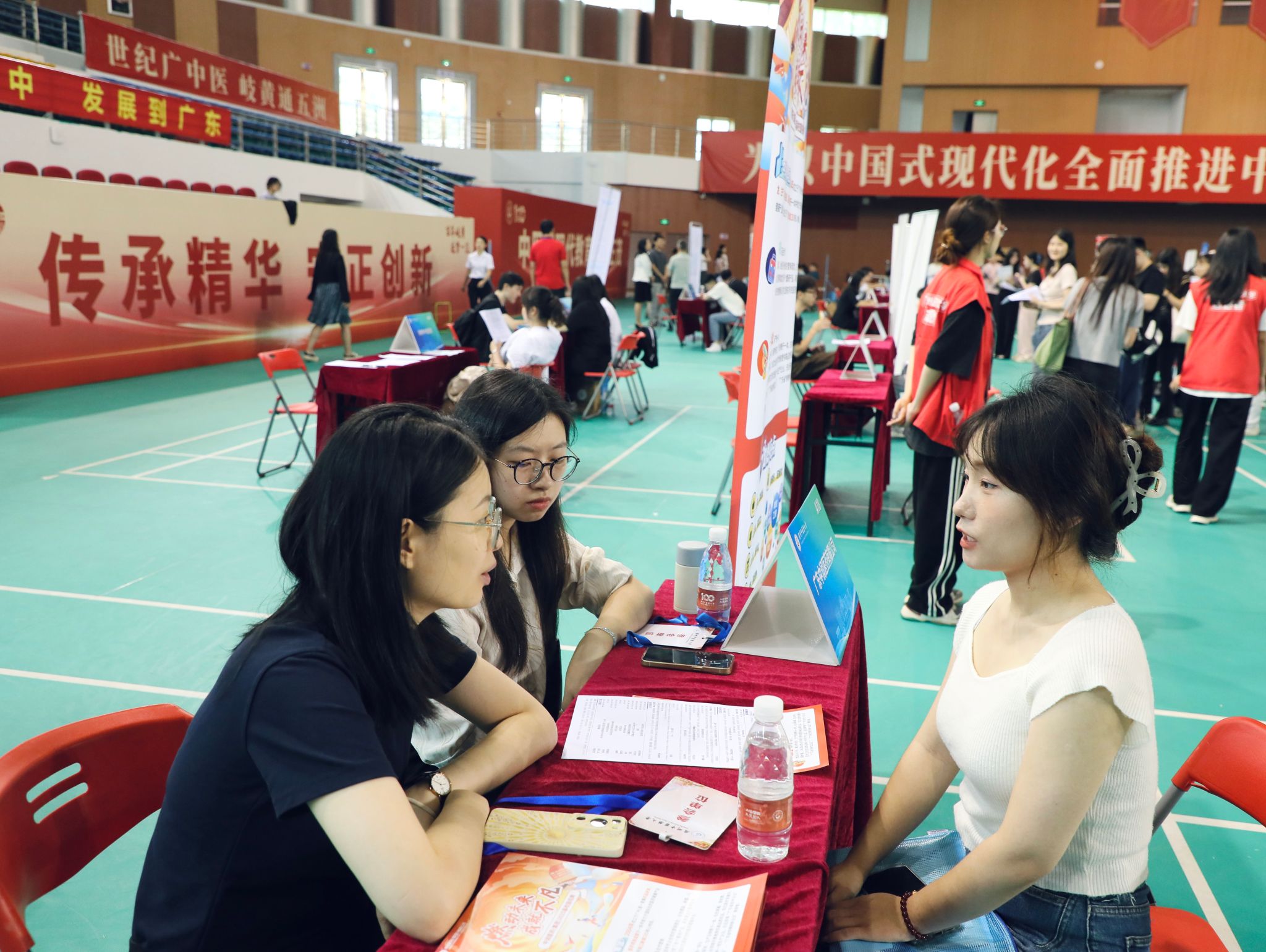 本场招聘会聚焦新质生产力和医药产业发展需求,专场吸引了深圳市宝安区中医院、梅州市中医医院、韶关市中医院、广州医科大学附属中医医院、开平市中医院、华润三九医药股份有限公司、国药控股广州有限公司等58家用人单位,涵盖了医疗卫生机构、制造业、服务业等多个领域,累计提供3075个优质就业岗位,其中面向本科生岗位2790个,硕士、博士岗位285个。用人单位提供了非常具有竞争力的薪酬和岗位,最高月薪达4万元,吸引毕业生扎根广东、服务广东。