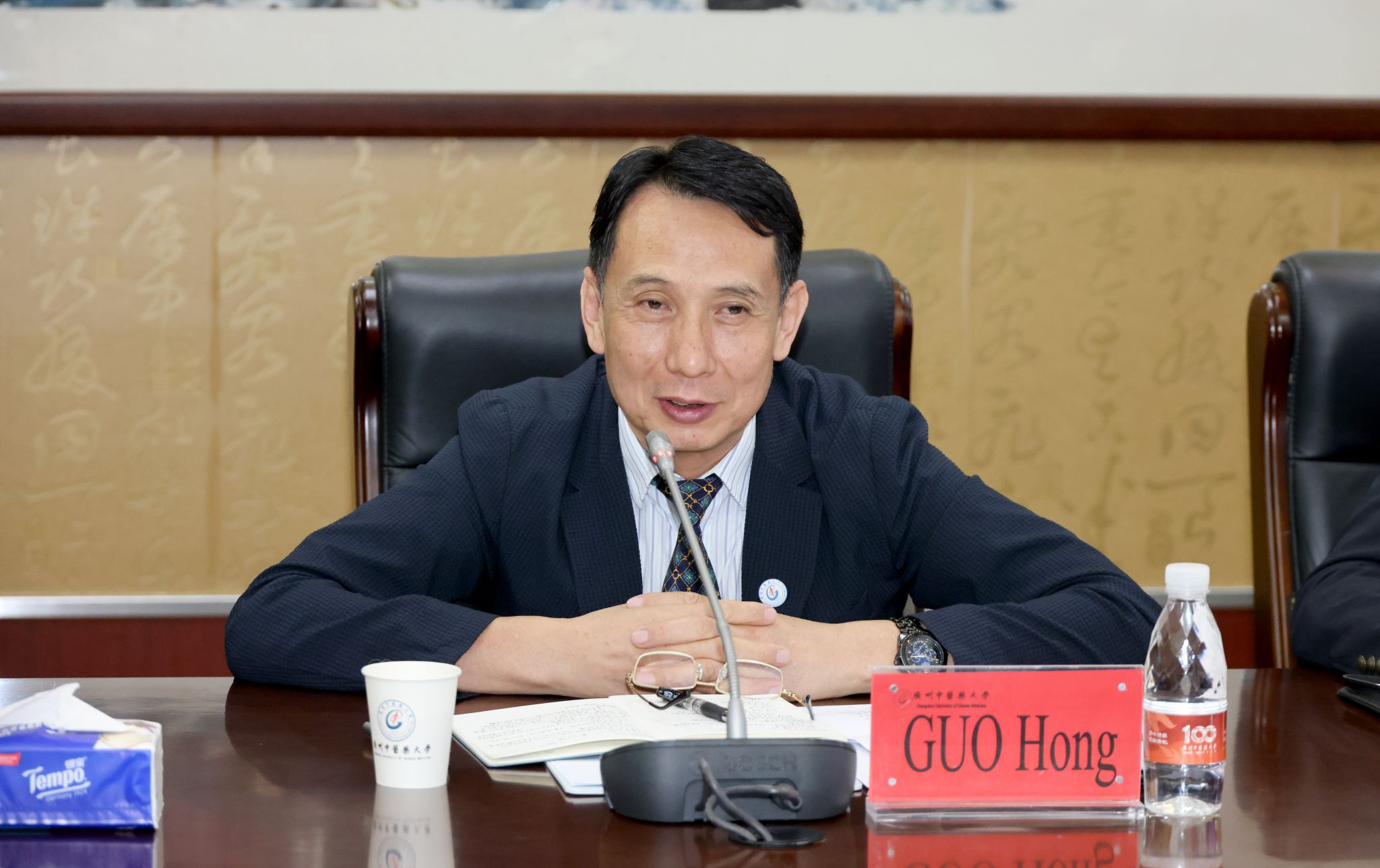 郭鸿在致辞中表示,学校与泰国在中医药领域交往历史悠久,早在上世纪70年代便接收泰国留学生,是中泰教育合作的先行者。多年来,学校与泰国高校及医药机构保持紧密合作,培养了大批中医药人才,为服务泰国民众健康作出积极贡献。2023年,泰国诗琳通公主殿下亲临学校访问并题词,成为中泰友好和中医药国际传播的重要象征。希望借此来访契机,拓展与泰国总领馆的交流合作,推动中医药在泰国及更广区域的传播与发展。