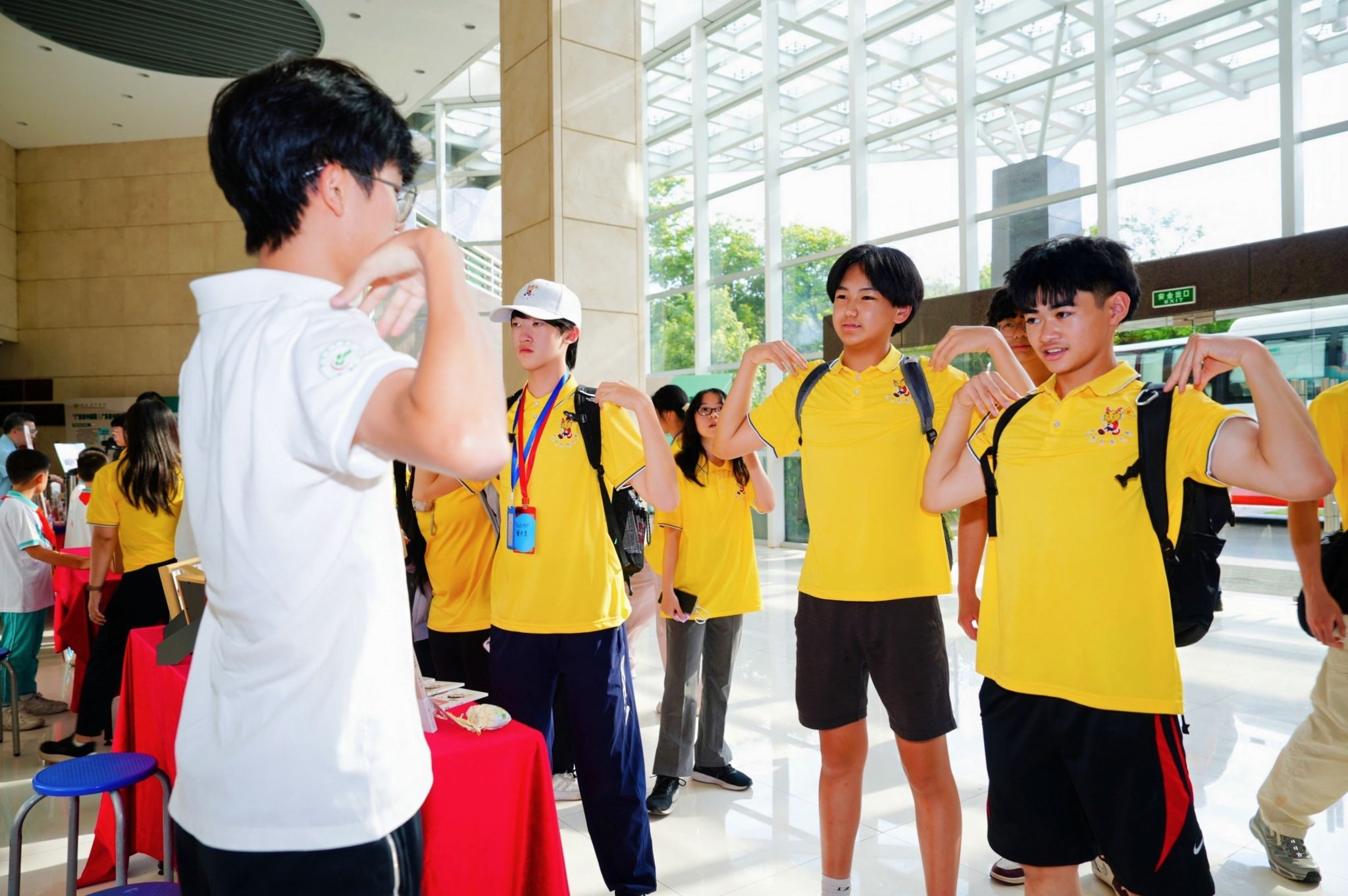 体验的第二站设在我校第二附属医院(广东省中医院)大学城医院。这里举办了别开生面的“中医药文化嘉年华”。营员们积极参与了调和五脏的“健儿操”学习,参观了中医特色疗法(如针灸、推拿、艾灸等)展示,进行了中草药的辨识互动,品尝了养生中草药茶饮,并了解了脊柱养护等中医养生知识。活动现场气氛热烈,营员们通过亲身参与,深刻体会到中医药在预防保健和治疗康复中的重要作用。