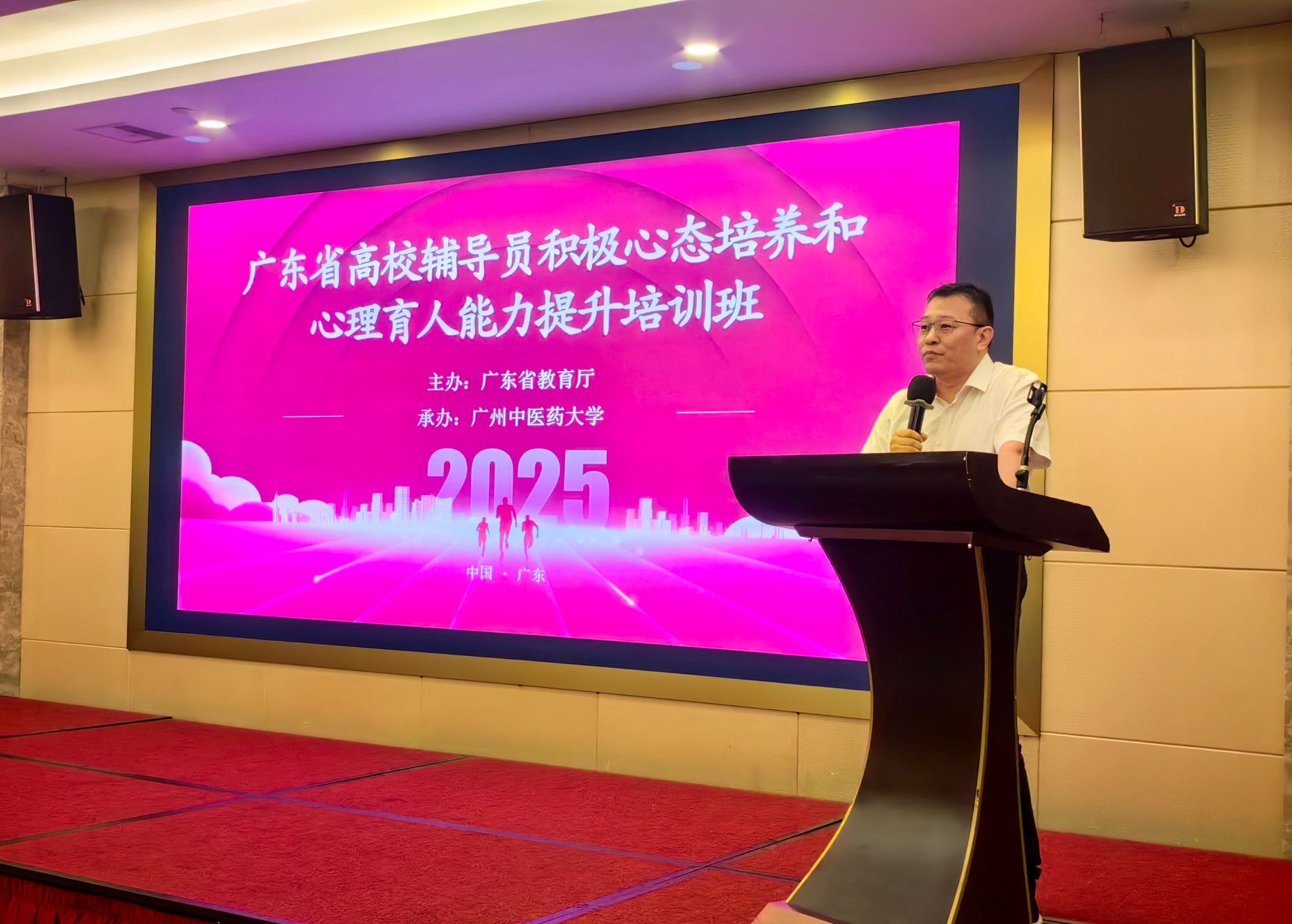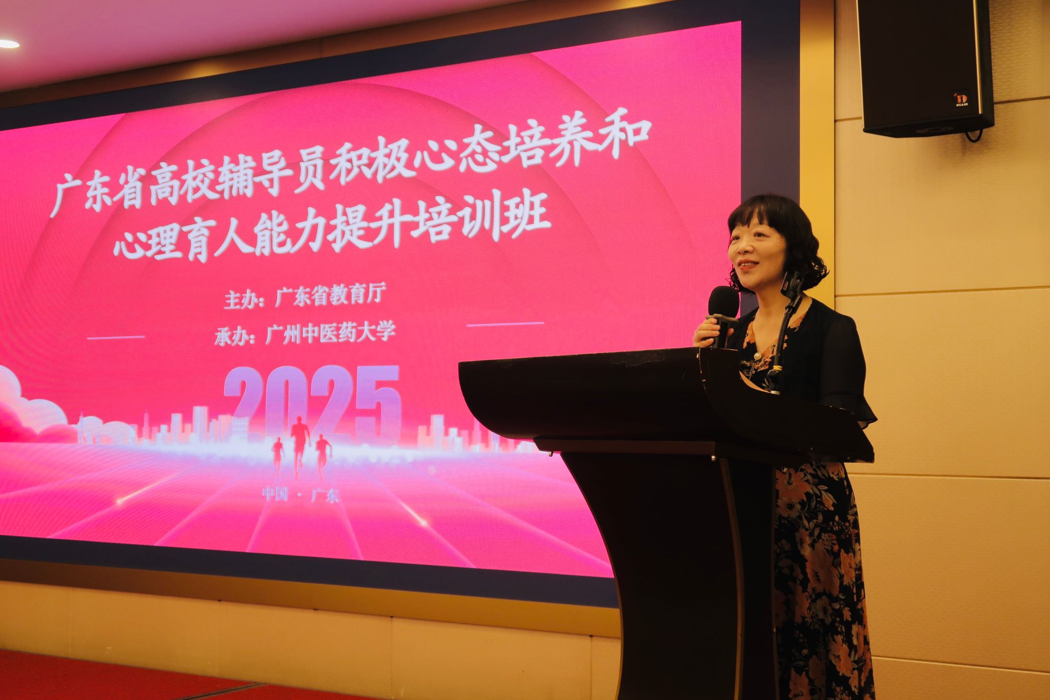 广东省教育厅思宣处三级调研员刘慧萍深刻剖析了当前大学生群体在学业、就业、人际关系、情感等方面面临的复杂心理压力与挑战,高度肯定了辅导员队伍作为“学生心灵守护者”和“校园和谐稳定坚强后盾”的关键作用与无私奉献。她指出,本次培训是落实习近平总书记“树立健康第一的教育理念”重要指示精神的具体行动,并对全体学员提出三点核心期望:一是深学细悟求实效,珍惜暑期“充电”时光,以“归零心态”系统学习,提升工作的预见性、精准性、有效性。二是交流互鉴聚合力,积极交流各校宝贵经验与特色做法,在思想碰撞和经验共享中破解难题,共同探索构建资源共享、优势互补、协同联动的全省心理育人工作新生态。三是身心调适再出发,关爱自身心理健康,学习科学压力管理与情绪调节方法,凝聚充沛能量,持续为学生传递温暖、信心与力量。