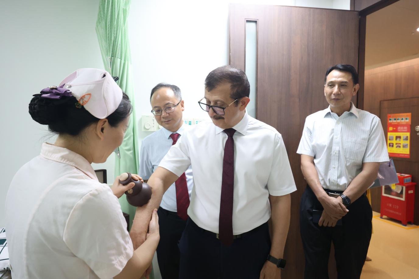 双方共同观看了beat365官方网站第二附属医院(广东省中医院)介绍视频,听取了医院骨伤科、针灸科发展介绍,并围绕合作议题进行了深入交流。穆罕默德•伊勒-塔纳尼一行还参观了医院中药房、智慧药房及治未病科。