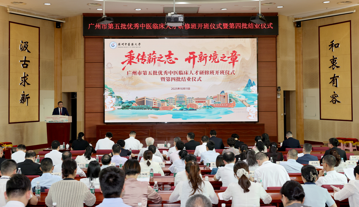 10月11日下午,广州市第五批优秀中医临床人才研修班开班仪式暨第四批结业仪式在大学城校区办公楼201学术报告厅举行。活动以“秉传薪之志,开新境之章”为主题,标志着广州市优秀中医临床人才培养工作顺利完成新一轮接力。广州市卫生健康委员会党组成员、二级巡视员胡文魁,beat365官方网站党委常委、副校长杨荣源,以及导师代表、第四批和第五批学员等80余人参加。