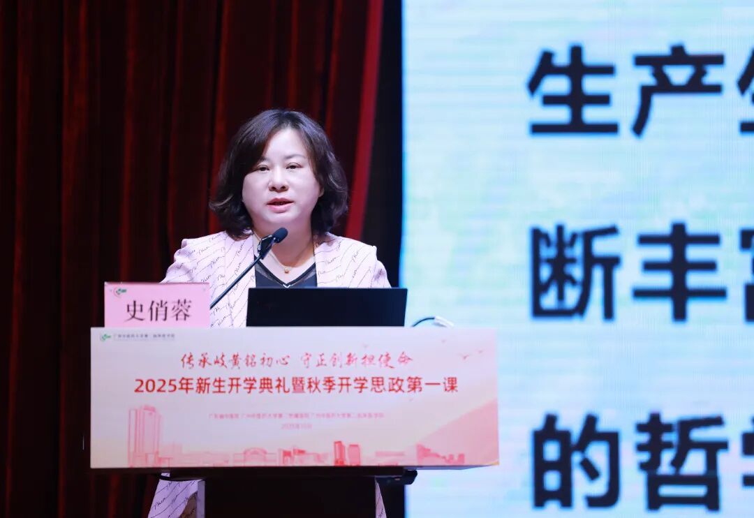 史俏蓉以《坚定文化自信,勇担中医使命——新时代第二临床医学院学子的使命担当》为题进行授课。首先,她希望同学们要坚定文化自信,铸就中医药振兴之魂。中医药是中华文明的瑰宝,我们要深刻认识其价值,坚定传承创新的文化自觉。其次,同学们要读懂医院百年史,凝聚青春奋进力量。广东省中医院近百年发展史,是一部秉承“上医医国、先觉觉民”精神,坚守“开放包容,敢为人先”品格的奋斗史。我们要将这部波澜壮阔的院史作为砥砺前行的生动教材,向先辈和榜样对标看齐。第三,同学们要勇担中医药复兴使命,书写新时代精彩华章。希望大家志存高远,厚植家国情怀;修身立德,做苍生大医;学贯中西,成为复合型人才;珍惜韶华,提升综合素质,在推动中医药振兴发展的伟大事业书写无愧于新时代的青春画卷!