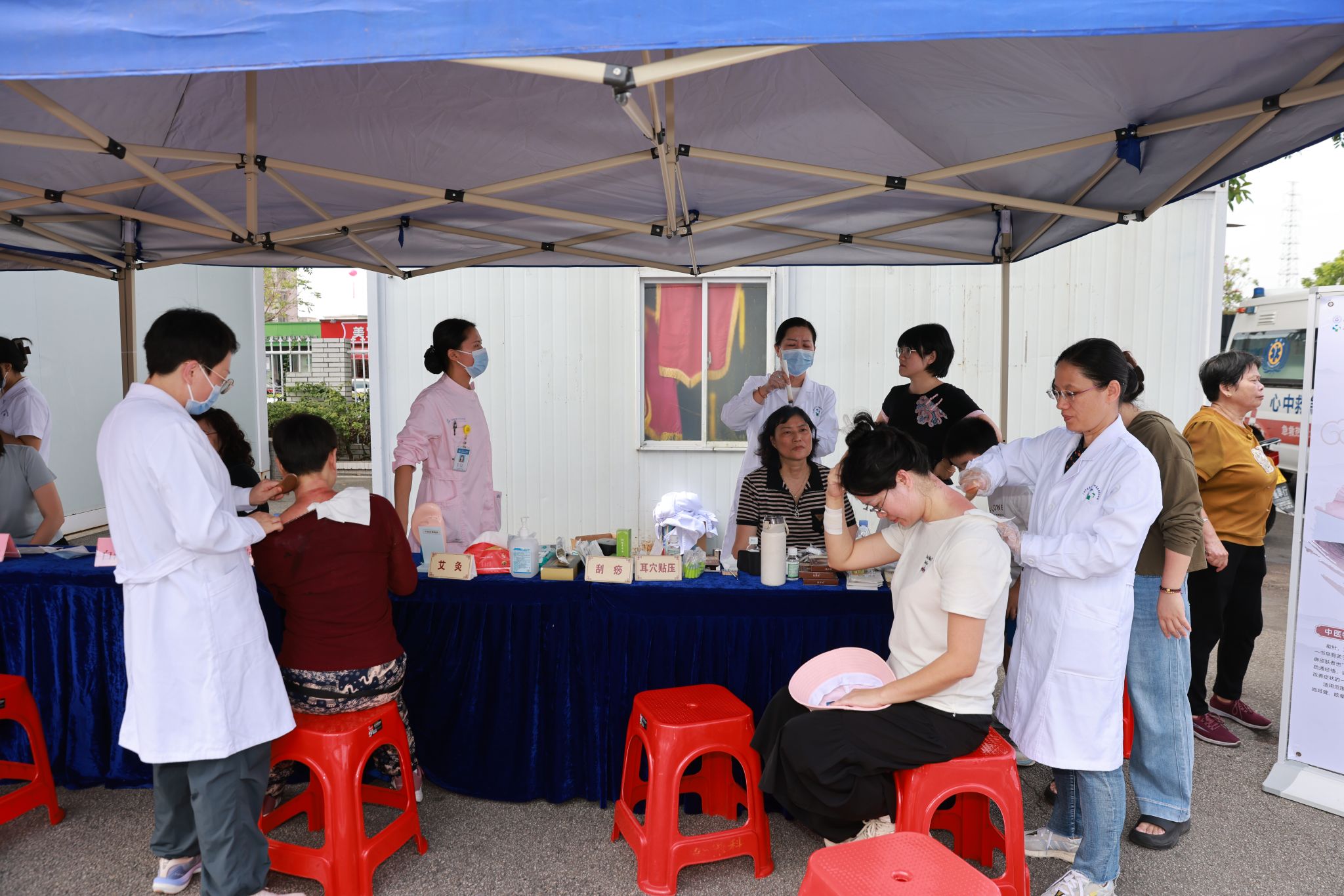 深汕中医医院为本次义诊提供了大力支持。现场设置清晰的分区指引,工作人员和志愿者耐心引导居民按需排队、有序就诊。活动采取现场预约取号方式,确保每位群众都能与专家充分交流。医院还为每位专家配备了同专业的本地医生,协助将专业医学术语转化为通俗的地方语言,实现了医患沟通“零障碍”,整个活动流程温馨、高效,赢得了群众的一致好评。