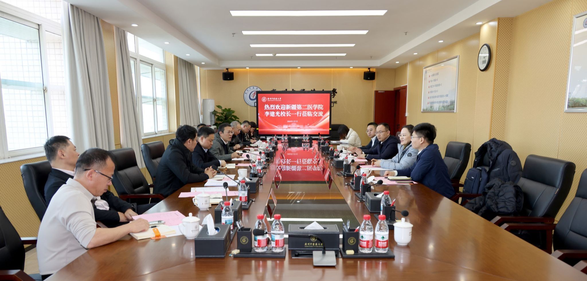 2026年1月7日下午,新疆第二医学院校长李建光一行来校调研交流,学校党委常委、副校长杨荣源参加座谈。双方就加强校际合作进行了深入交流。