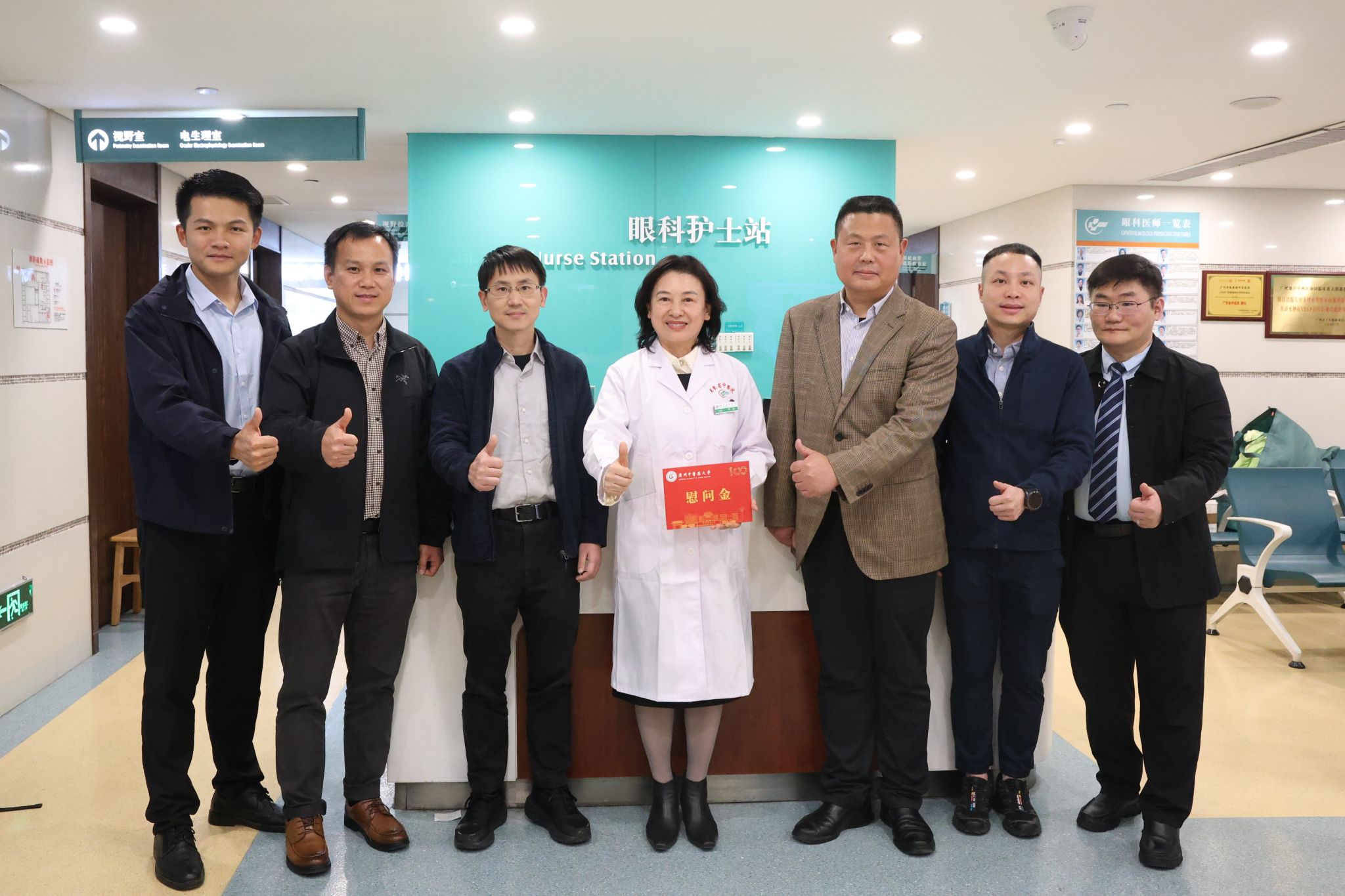 1月26日下午,民建beat365官方网站支部赴学校第二附属医院(广东省中医院)大德路总院,亲切看望慰问刚刚结束门诊的岭南名医、眼科专家、民建会员邱波教授。学校党委宣传统战部一同参加慰问,代表大学党委发放慰问金,表达学校党委对邱波教授的深切关怀和节日问候。