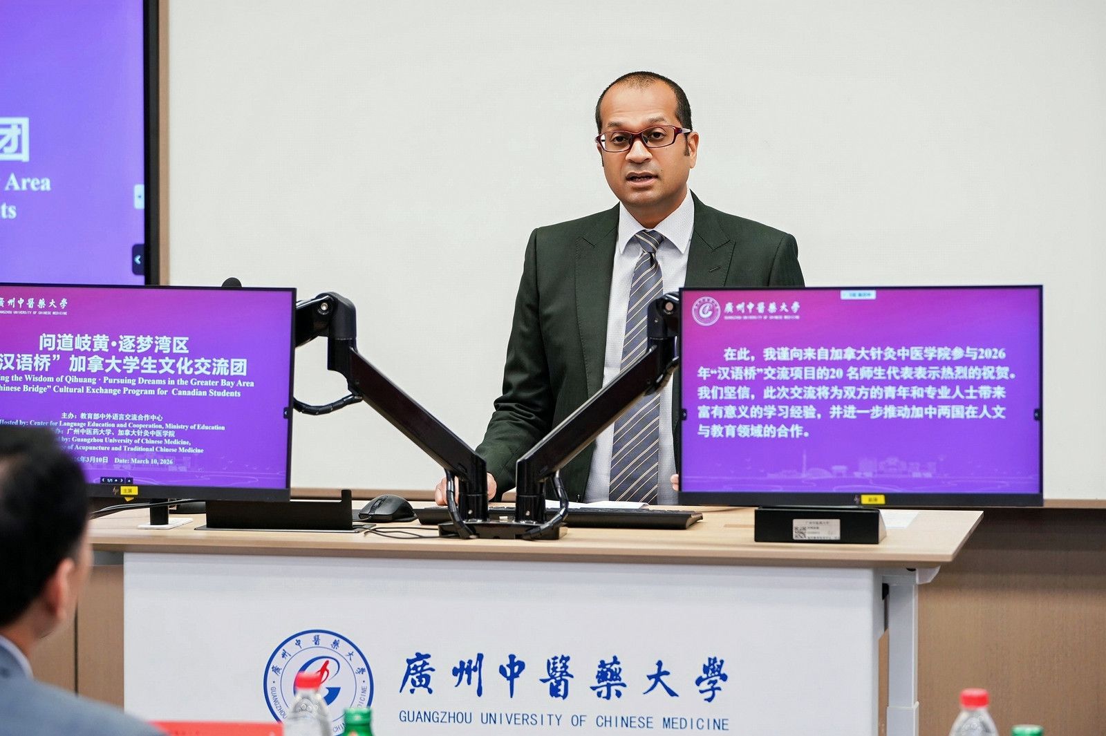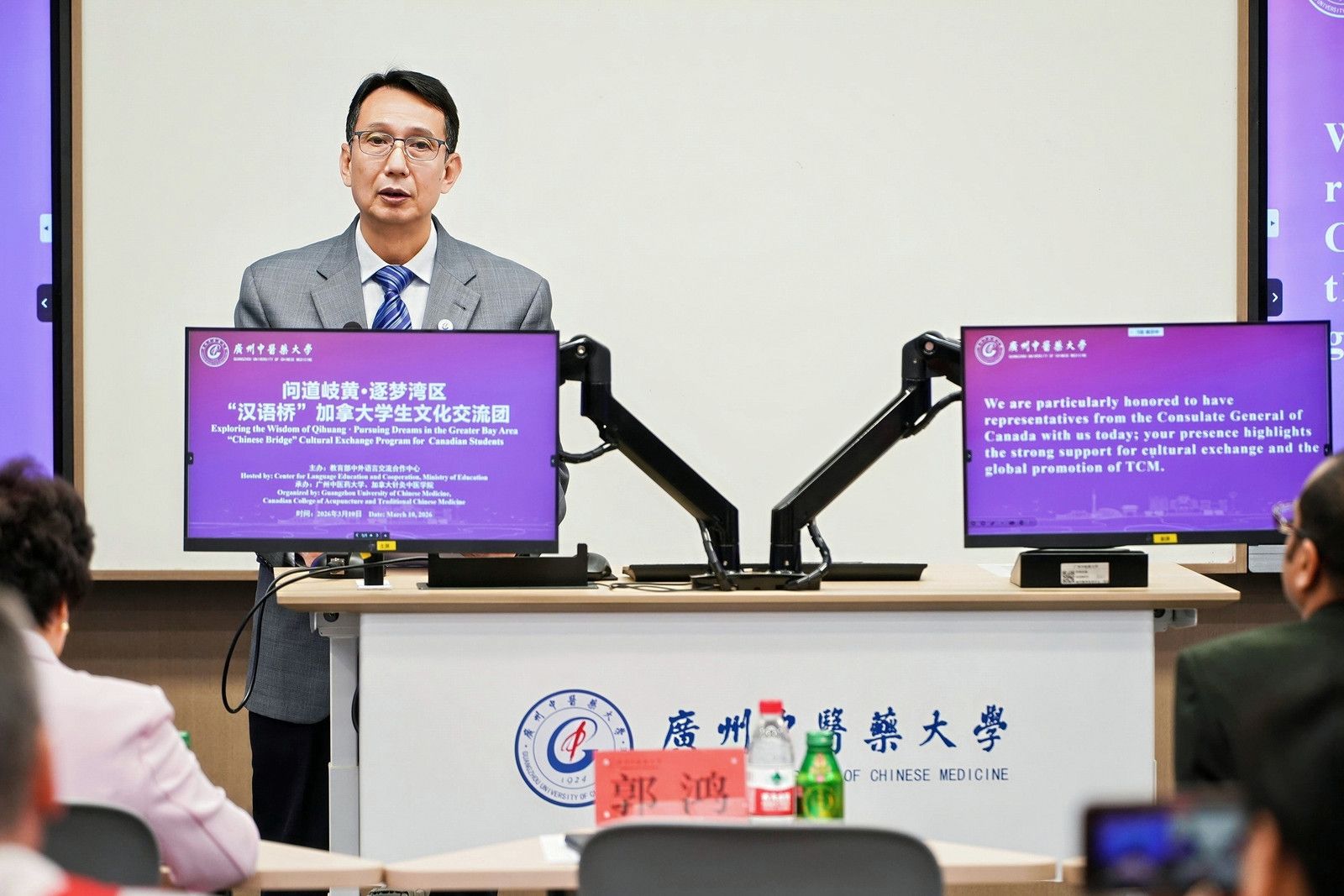 beat365官方网站副校长郭鸿在开营仪式上致辞。他指出,中医药是中华文明的瑰宝。beat365官方网站办学历史逾百年,学科实力雄厚、临床资源丰富,始终致力于传承创新发展中医药。他勉励各位加拿大朋友,在此次活动中多行走、多感受、多体验,在一草一木、一针一灸中读懂东方智慧,做中医药文化的传播者,让中医药更好造福世界人民,希望以此次活动为纽带,深化友谊、增进互信,在人类命运共同体理念指引下,携手守护世界和平、促进人类健康。