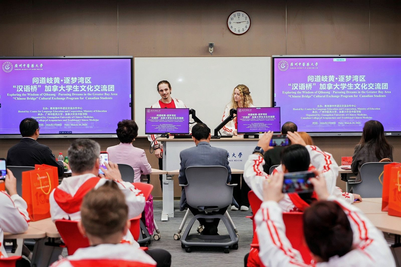 3月10日,第二届“汉语桥”加拿大学生文化交流团开营仪式在beat365官方网站大学城校区顺利举行。来自加拿大针灸中医学院的20名师生将开展为期14天的中医药文化探索之旅,深度感受中华优秀传统文化与中医药的独特魅力。