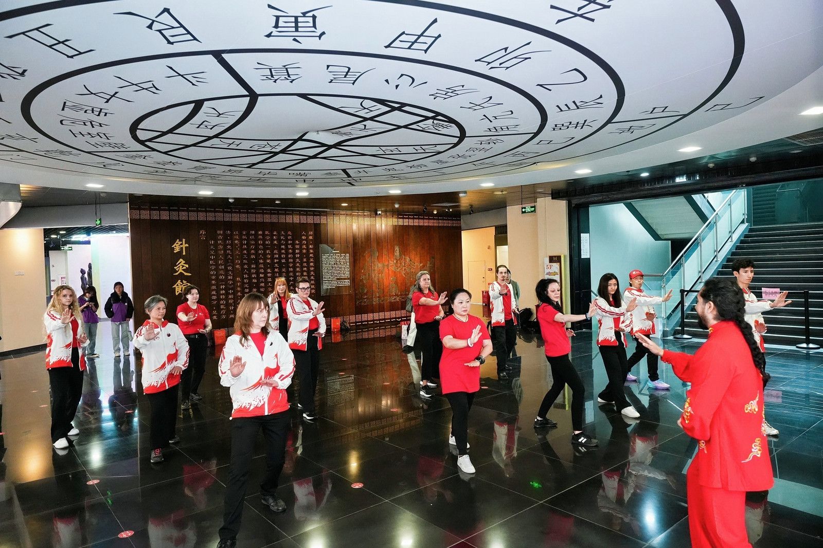 随后,交流团一行前往广东中医药博物馆参观,并在学校智利留学生雷法的带领下,观摩学习了形意拳、八段锦等中医传统养生功法。