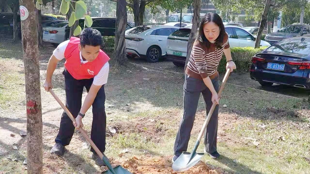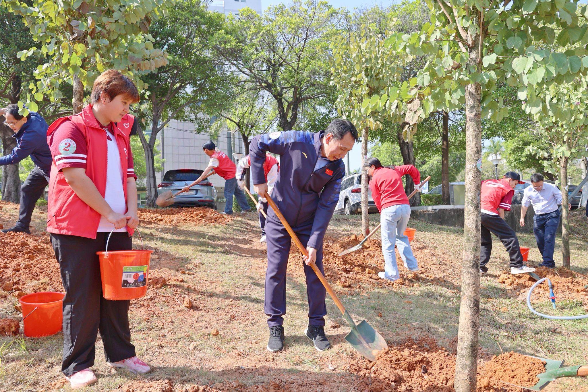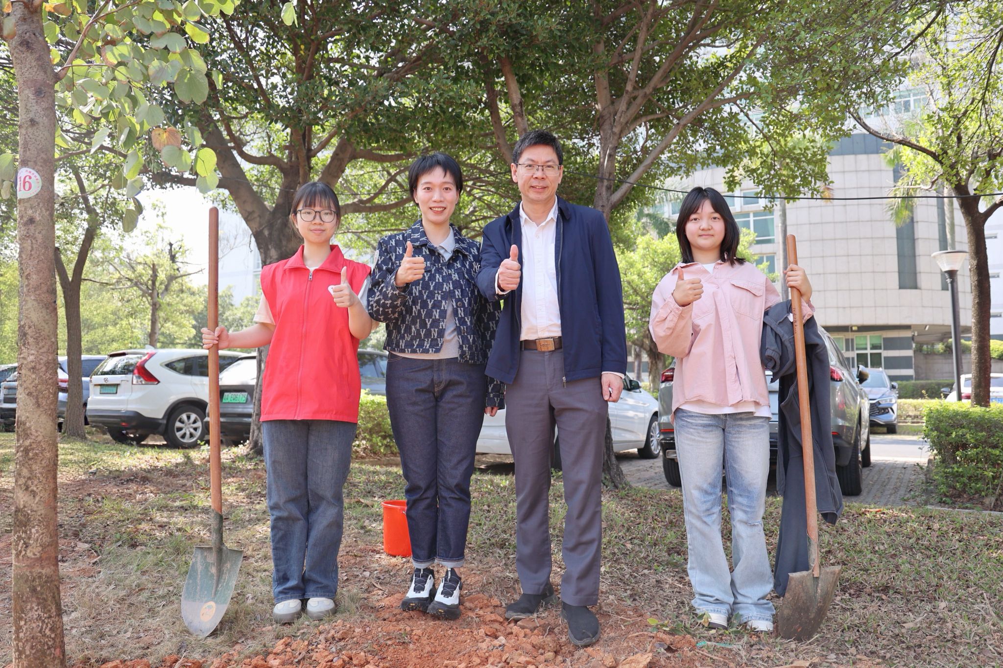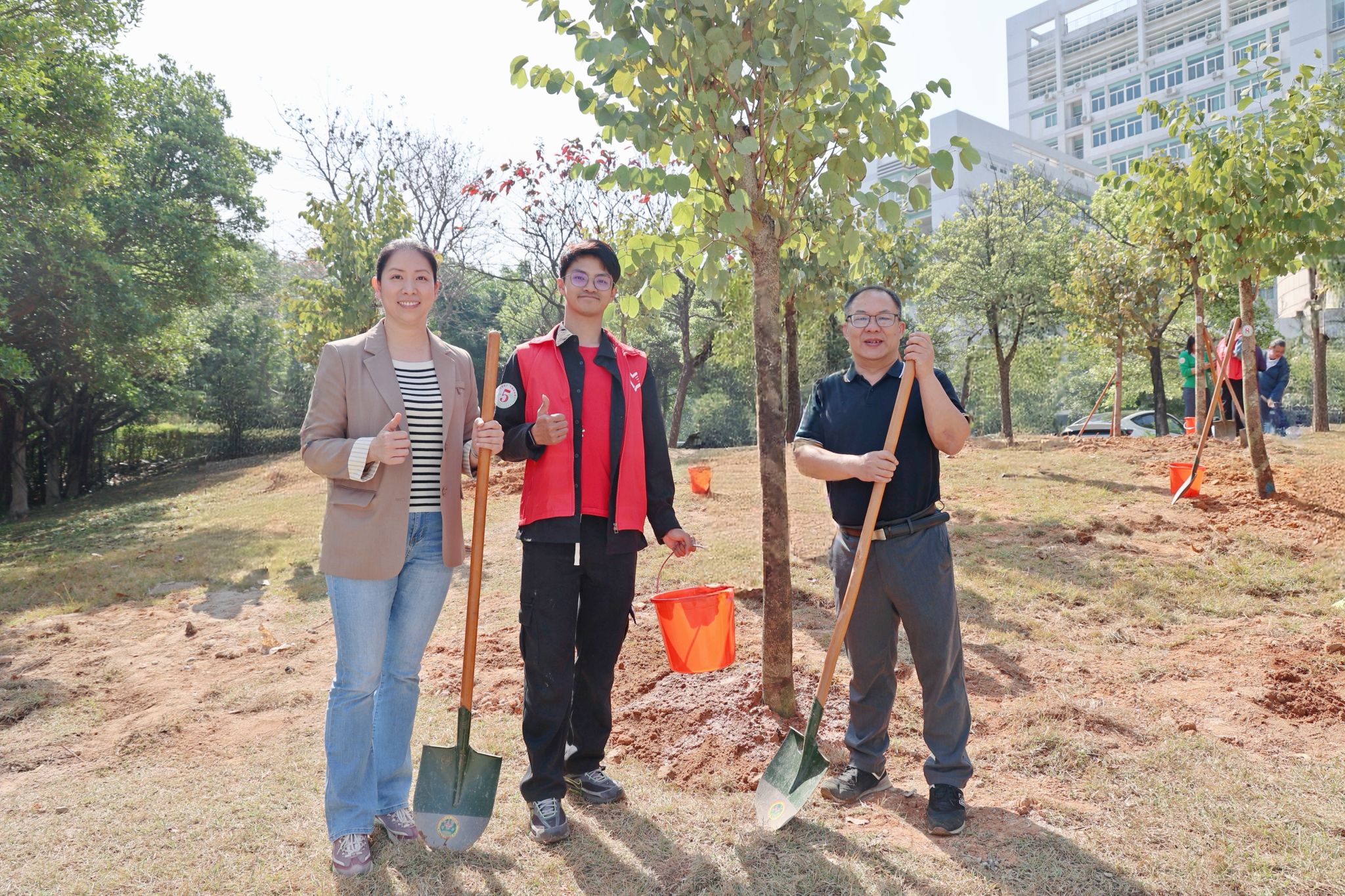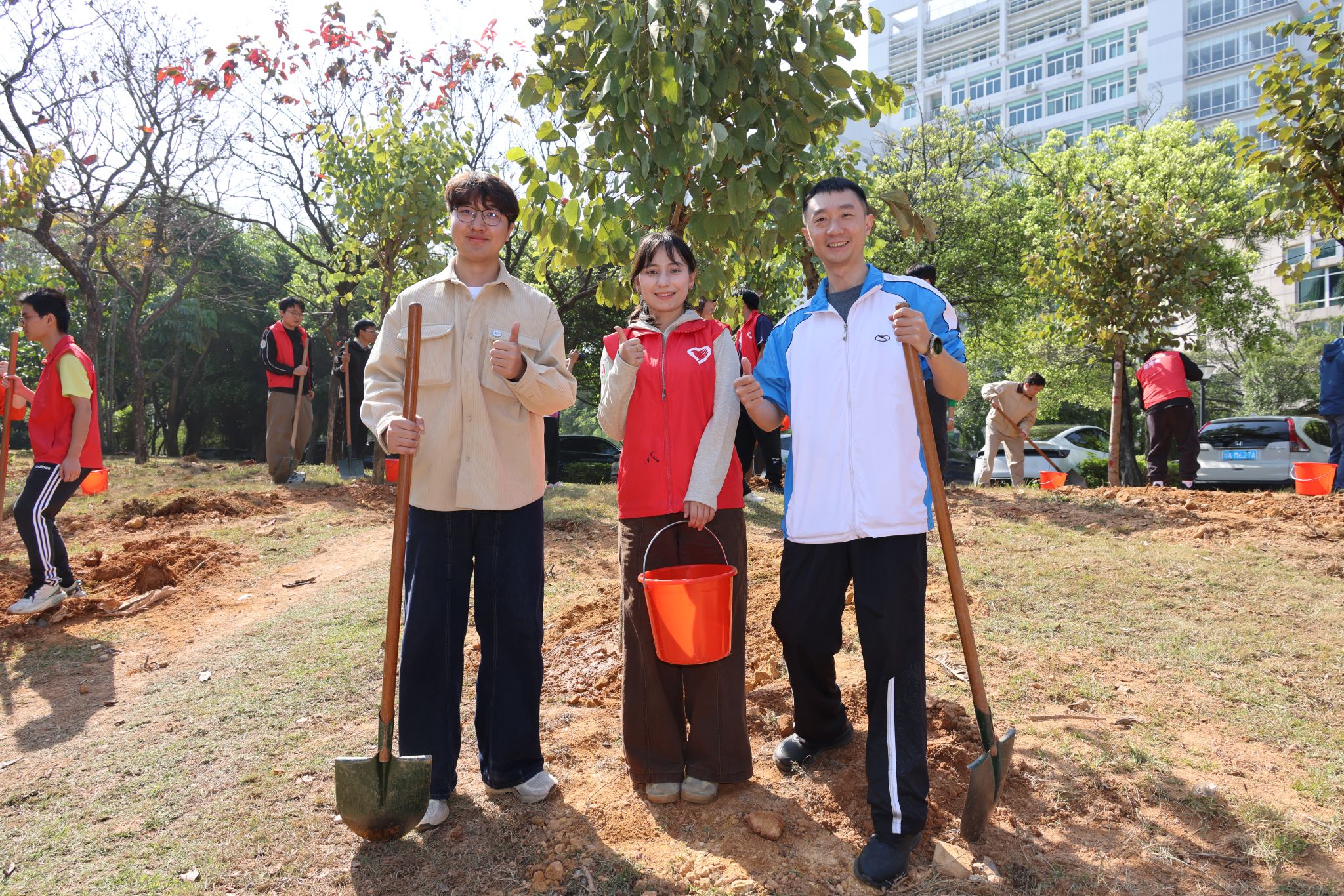 春风送暖,万物复苏,在第48个植树节来临之际,为深入践行习近平生态文明思想,助力绿美广东、美丽中国建设,传承中医药文化精神,3月12日上午,学校在大学城校区举办“传承岐黄薪火 共植杏林春色”义务植树活动。学校党委书记陈文锋,党委常委、纪委书记林奕娇,校本部相关部门负责人、教师及学生代表等60人参加,副校长郭鸿主持活动。