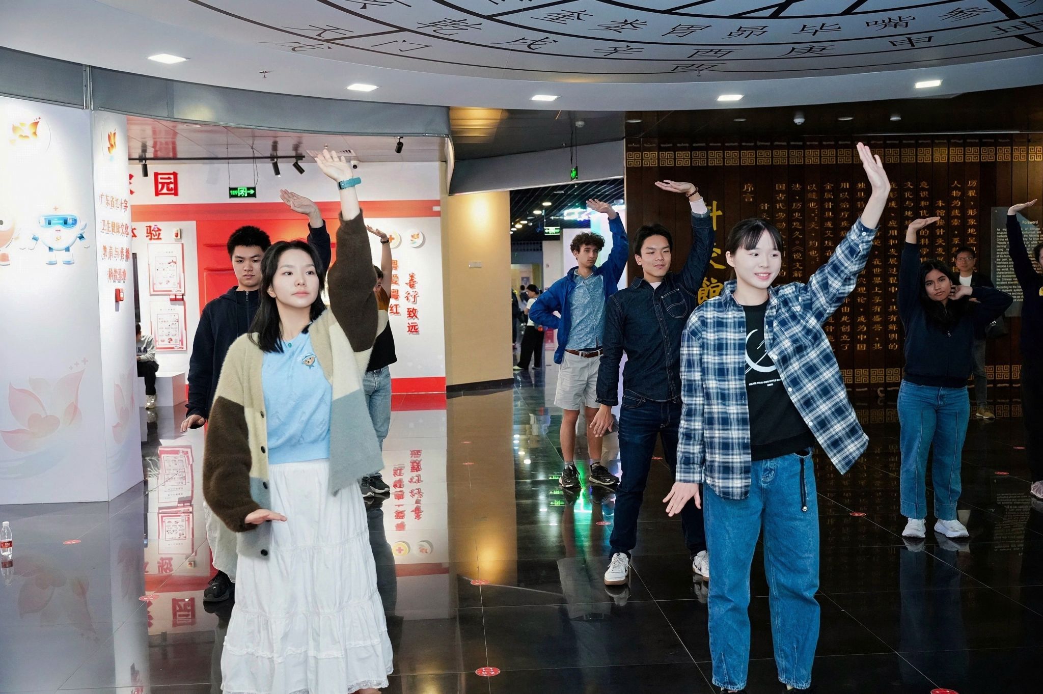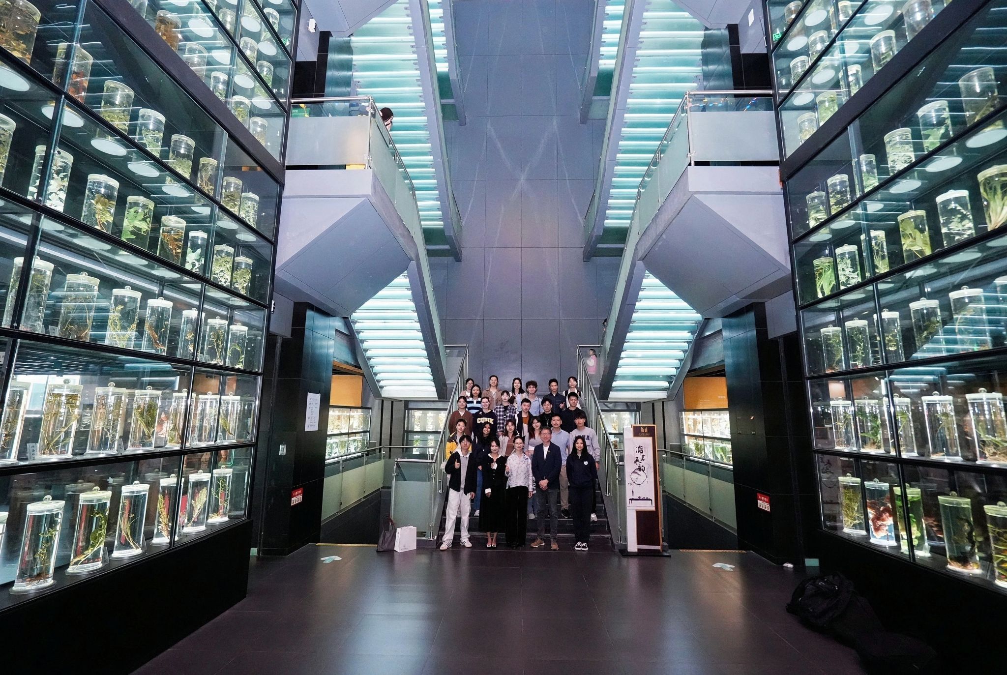 随后,来访团一同参观博物馆内 14.8 米高的中草药标本墙,近距离观赏古代针灸器械、岭南中医药文物等珍贵馆藏,在实物与史料中探寻中医药的发展脉络。