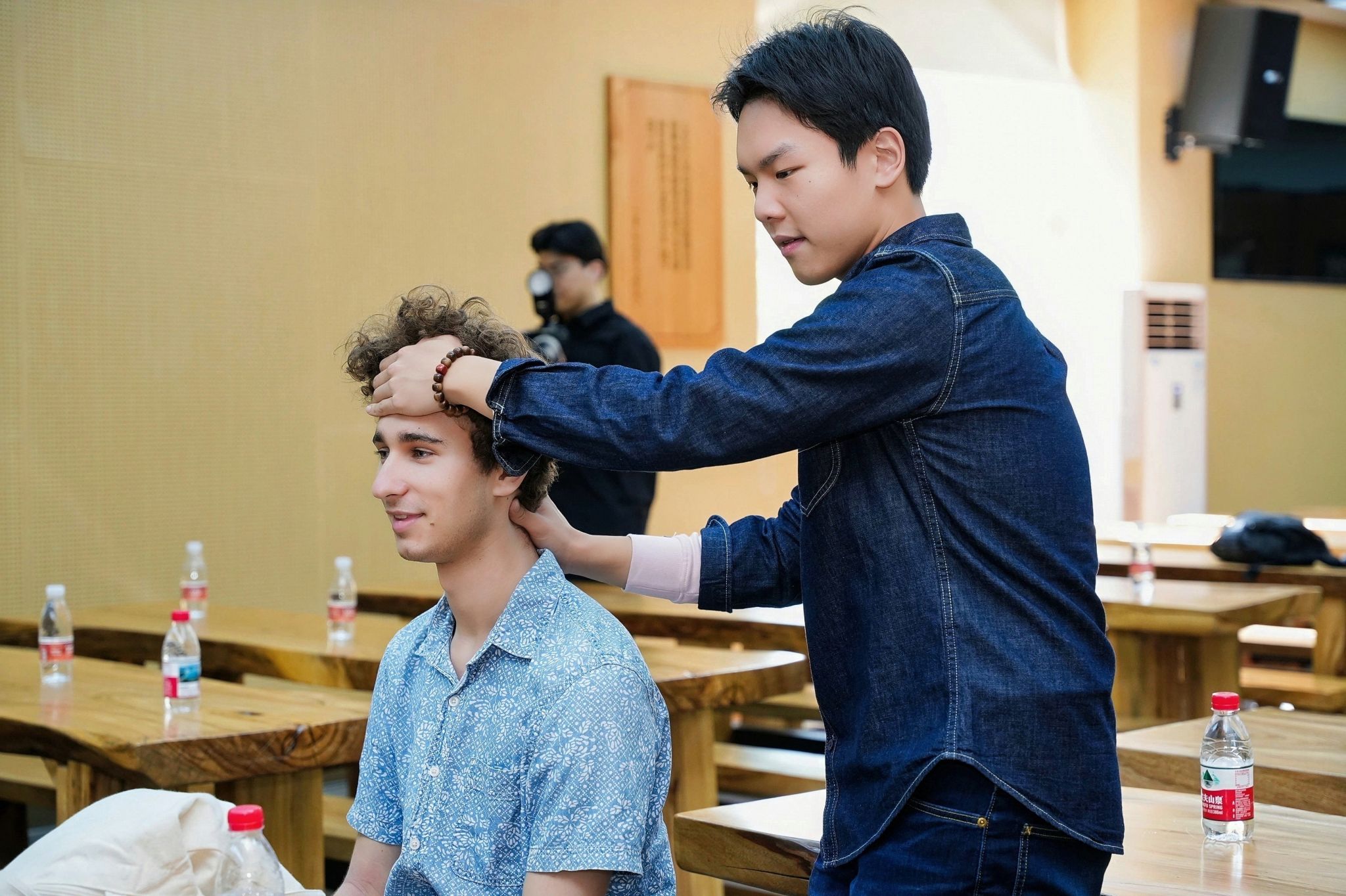 讲座后,在广中医学生的专业指导下,耶鲁与港中大师生亲身体验推拿、耳穴诊疗等中医特色疗法,沉浸式感受中医诊疗的独特手法与实用价值。