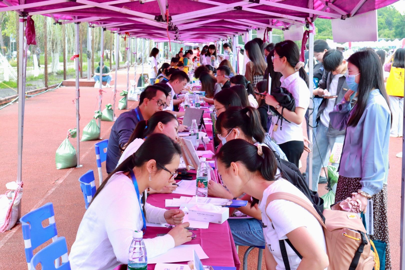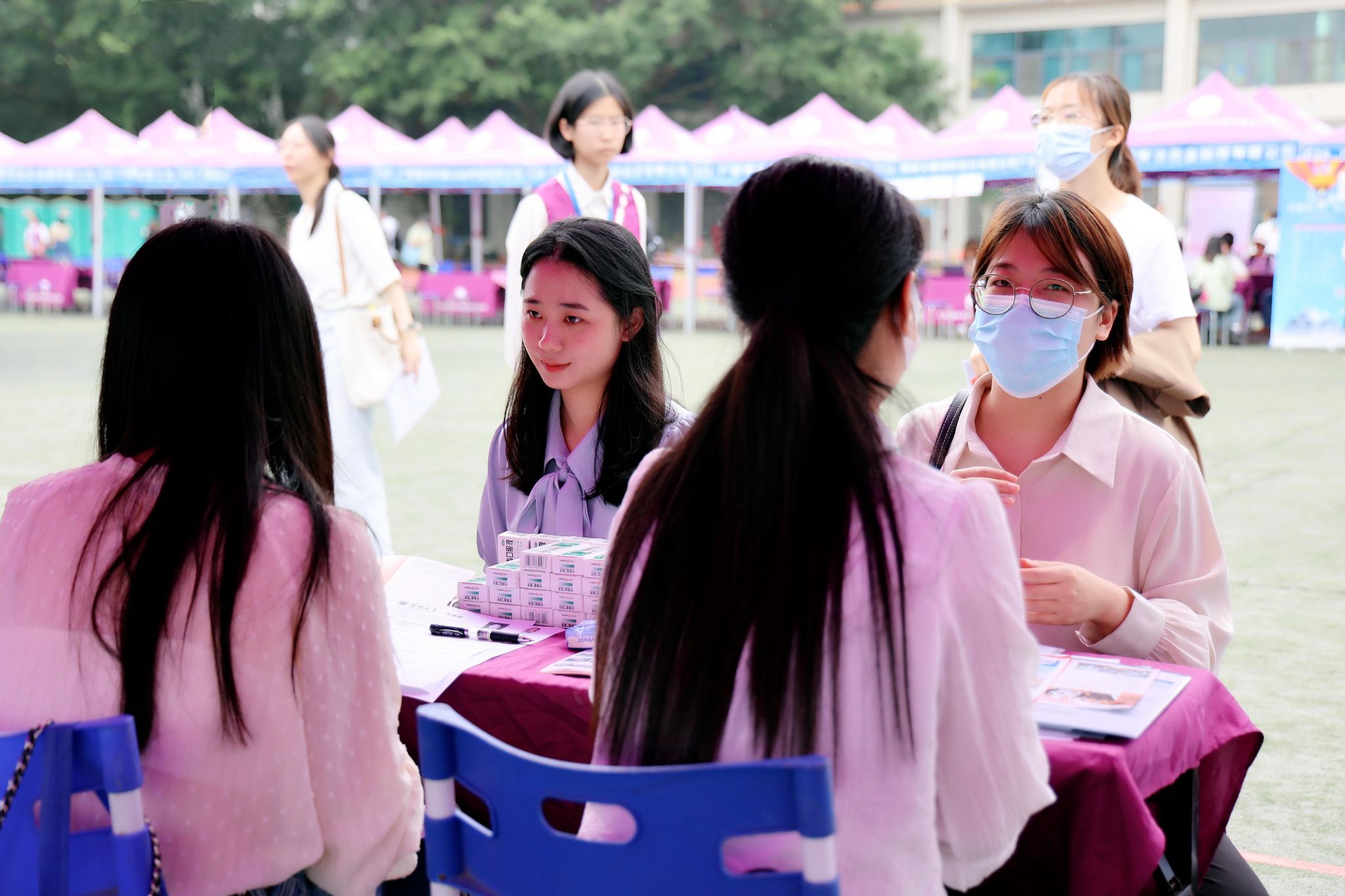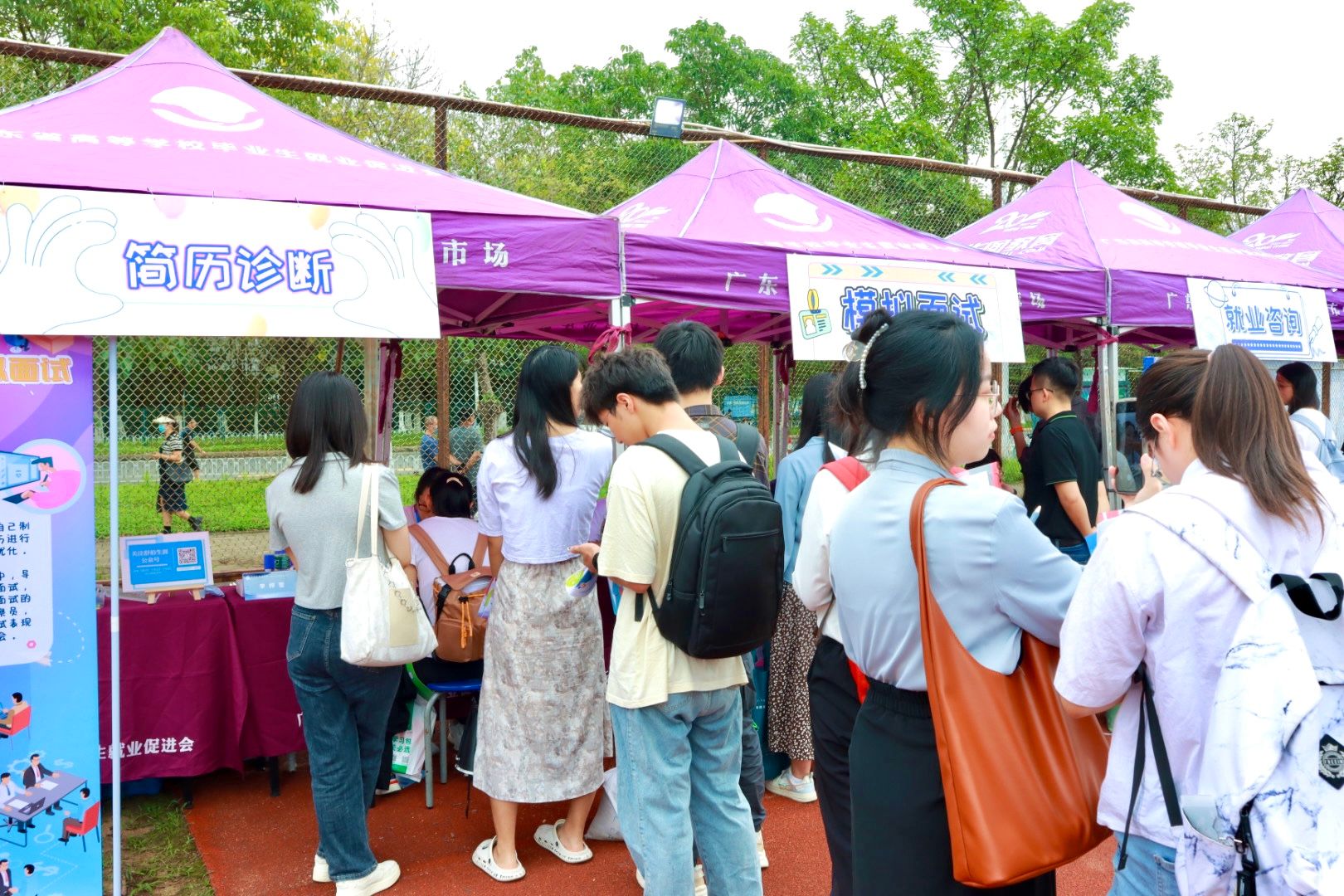 云浮市卫生健康局、韶关市武江区卫生健康局等单位组织下属机构组团到场招聘基层医疗卫生工作人员。汕头市潮南区中医医院为应届本科毕业生提供35个带编制岗位,现场进行资格审核发放面试通知。中山市中医院、清远市中医院、江门市新会区人民医院、台山市中医院等单位为毕业生开出了1.2万元以上的月薪条件。台山市中医院还为本科及以上毕业生提供一次性发放安家费7万元以上补贴、人才公寓等福利待遇。