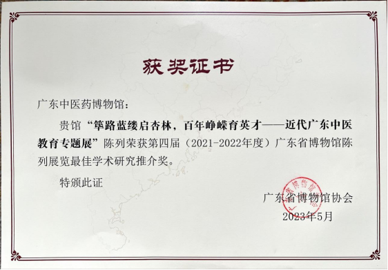 广东中医药博物馆获省博协精品展览“最佳学术研究推介奖”